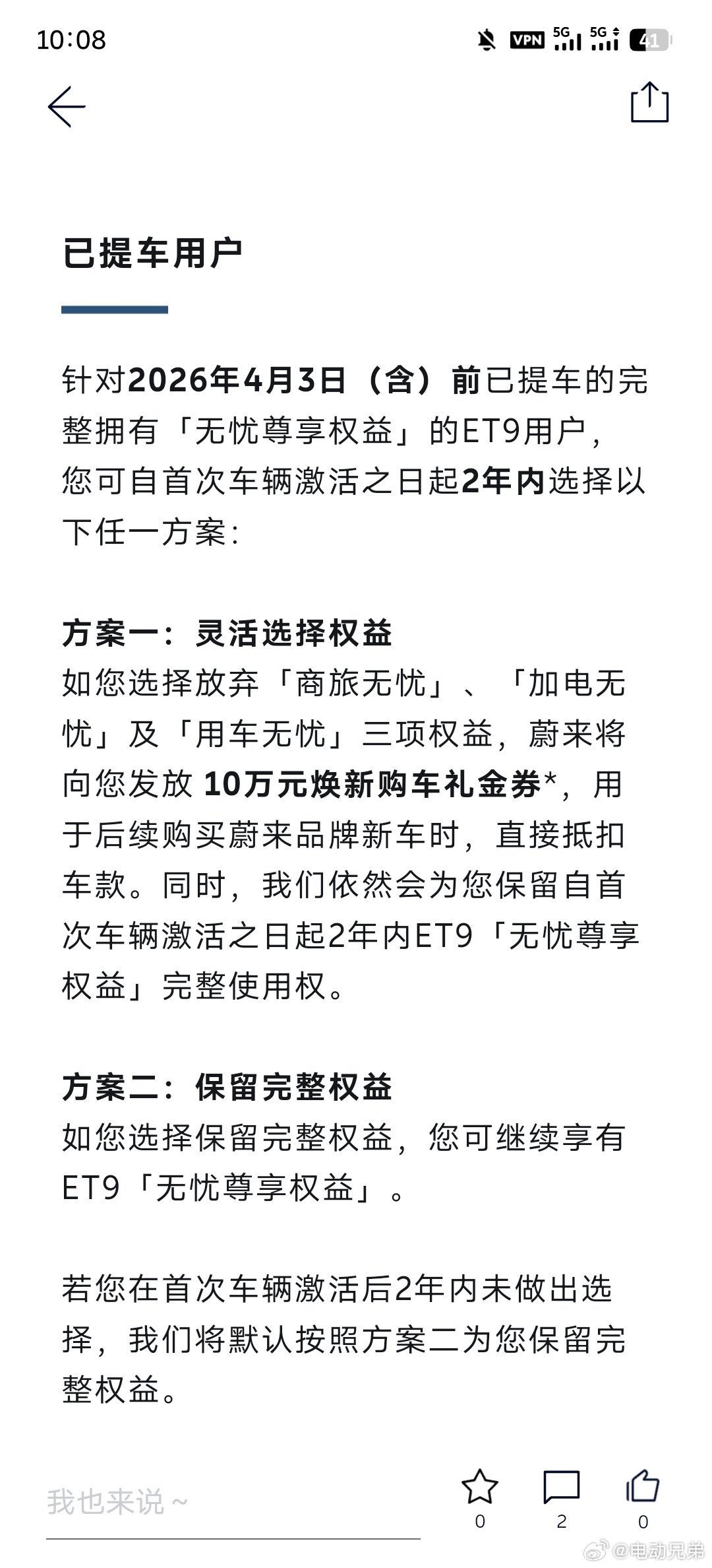今天等于是允许权益解绑,买任何蔚来新车变现10万元,这事就终于解扣了。
