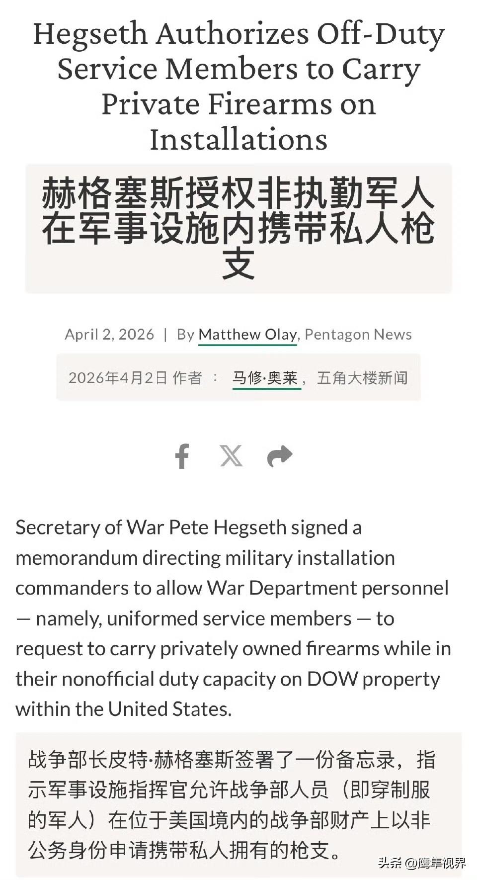 赫格赛斯称:他已经签署备忘录,解除了美军军事设施的禁枪令。指示军事设施指挥官允许美国战争部人员(即穿制服的军人)在位于美国境内的战争部财产上以非公务身份申请携带私人拥有的枪支。所以,理论上,五角大楼也能带私枪了?封梁王,开府仪同三司,天策上将,加宇宙大将军,出禁入跸,入朝不趋,剑履上殿,赞拜不名,都督中外诸军事,总百揆,太平令,加九锡、玺绶、远游冠、相国绿綟绶。建天子旌旗,乘金根车,驾六马,备五时副车,置旄头云罕,乐舞八佾,设钟虡宫县,再把皇后赏赐给你。