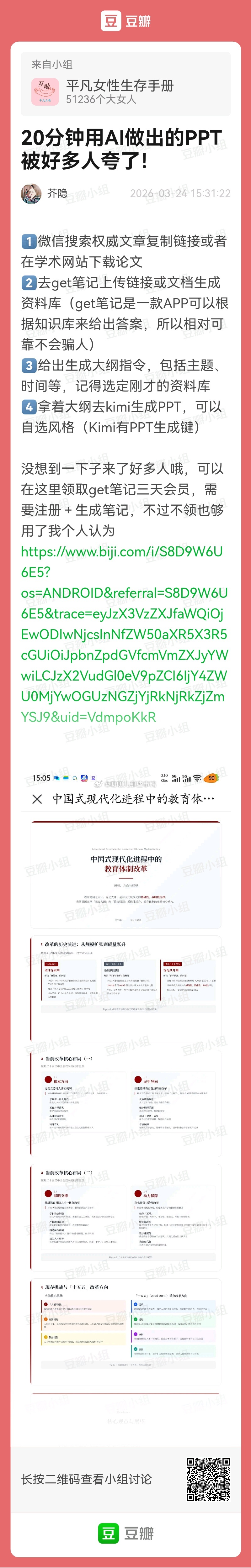 实用帖→20分钟用AI做出的PPT被好多人夸了~