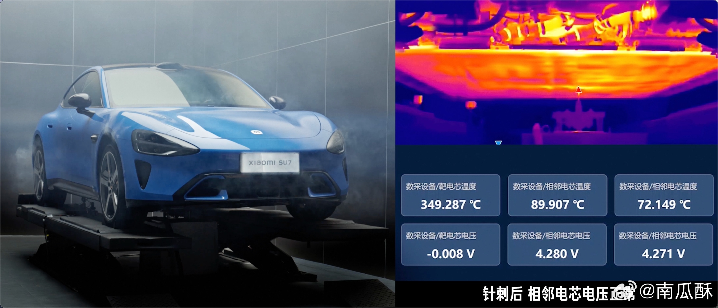但,小米汽车对自己的要求不止国标,新SU7的三元锂电池通过了一系列的极限安全测试。