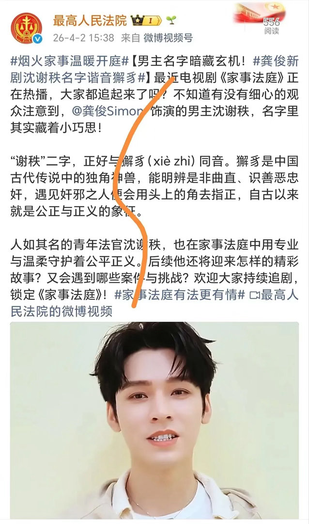媒体又发《家事法庭》名字科普,龚俊粉丝还进行发鸡蛋普法,把剧里沈谢秩法官的“法理
