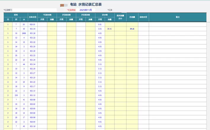 水情监测是水电站调度与防洪管理的核心环节。勤哲Excel服务器建立进水闸、泄洪闸及无闸泄洪数据关系表,实现水情数据统一登记与流量自动计算。系统可自动生成汇总报表,并提供趋势分析与历史比对,为防洪调度、发电计划和水资源管理提供科学决策依据。通过平台的数据集中管理与自动化处理,管理人员可实时掌握水情变化,确保调度决策快速、准确且高效。