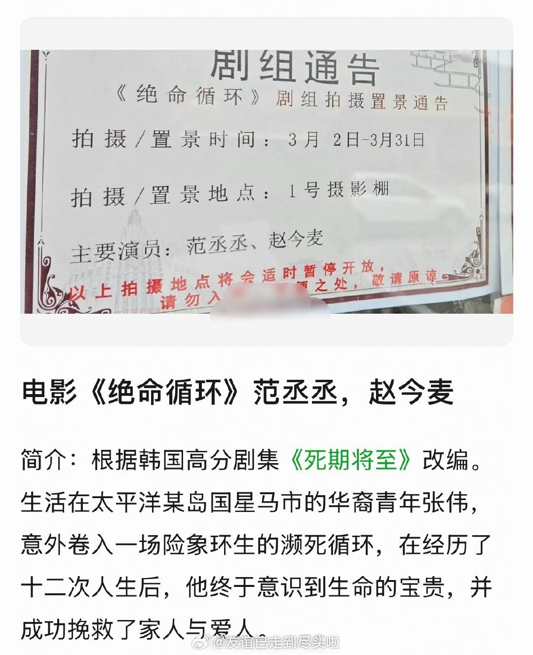 破案了,张艺谋儿子导演的电影《绝命循环》剧组通告已出,赵今麦被范丞丞压番