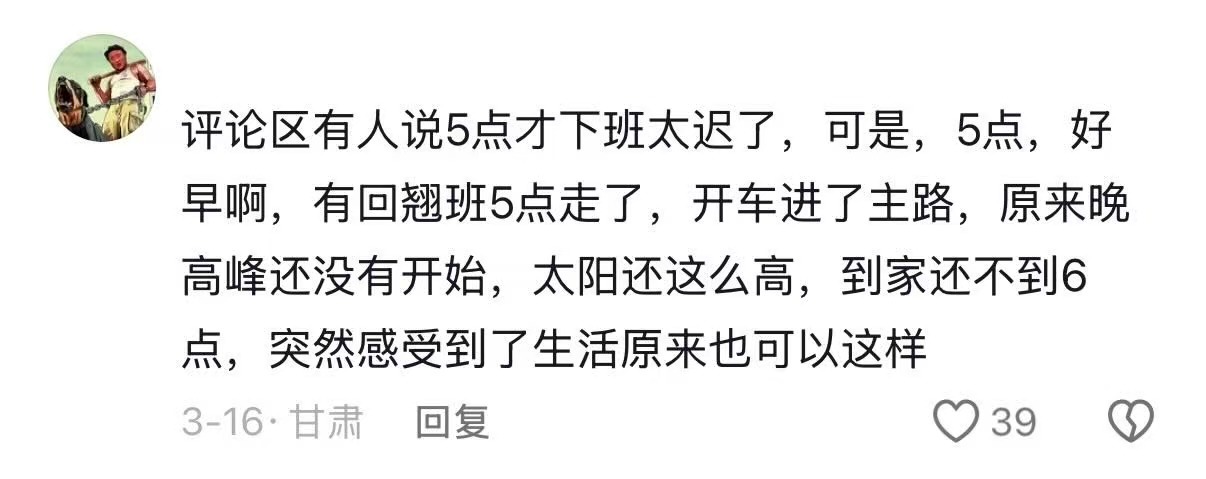 早点下班人就应该三点半下班,戴着耳机晒着太阳走在路上,感受四季不同的风景,而不是
