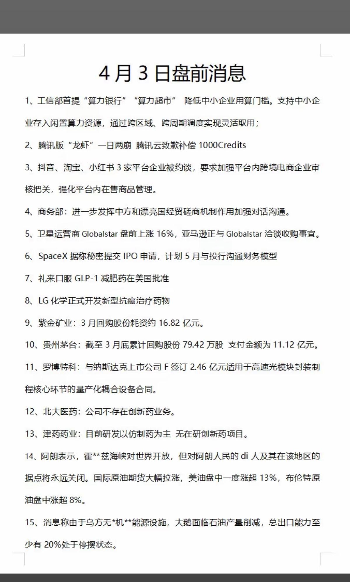 4.3周五 财经热点+上市公司公告汇总 1.石油 2.算力 3.商业航天 4