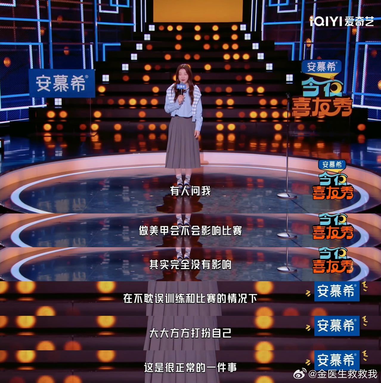 陈梦没有不展示美甲的义务 拒绝刻板印象!陈梦在节目里大方谈美甲,说清爱美与比赛互不影响,还幽默化解争议。运动员首先是女生,爱美是自由不是过错,不该被过度评判,自在爱美才是最舒服的状态 今夜喜友秀
