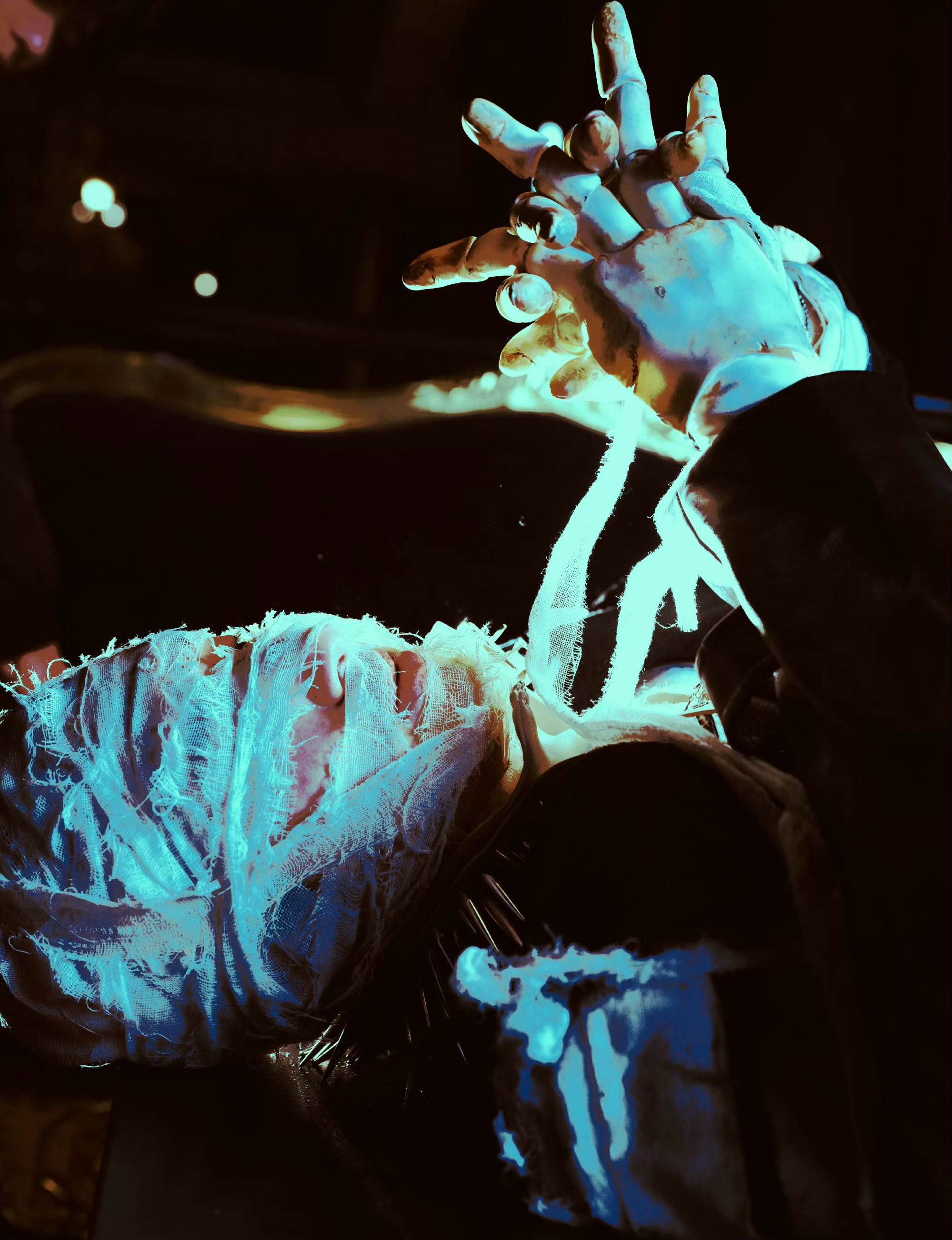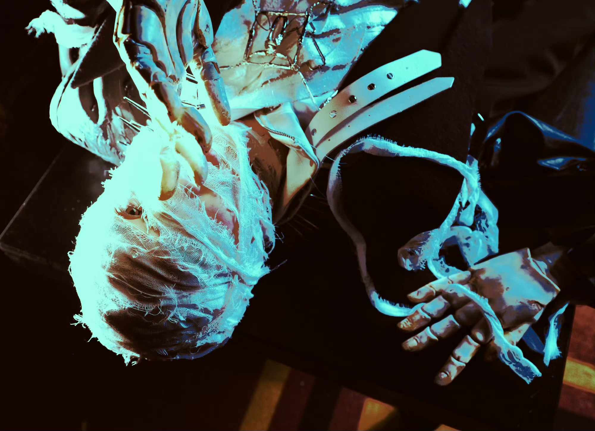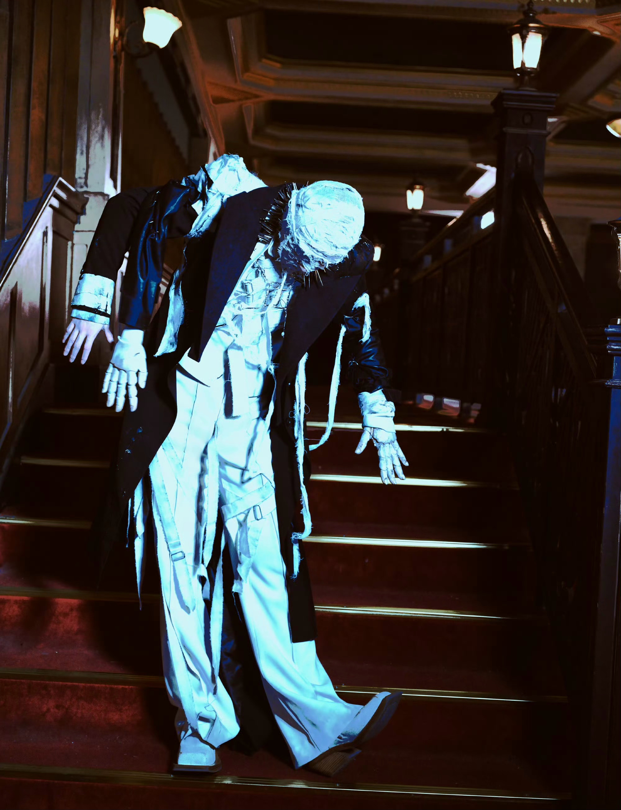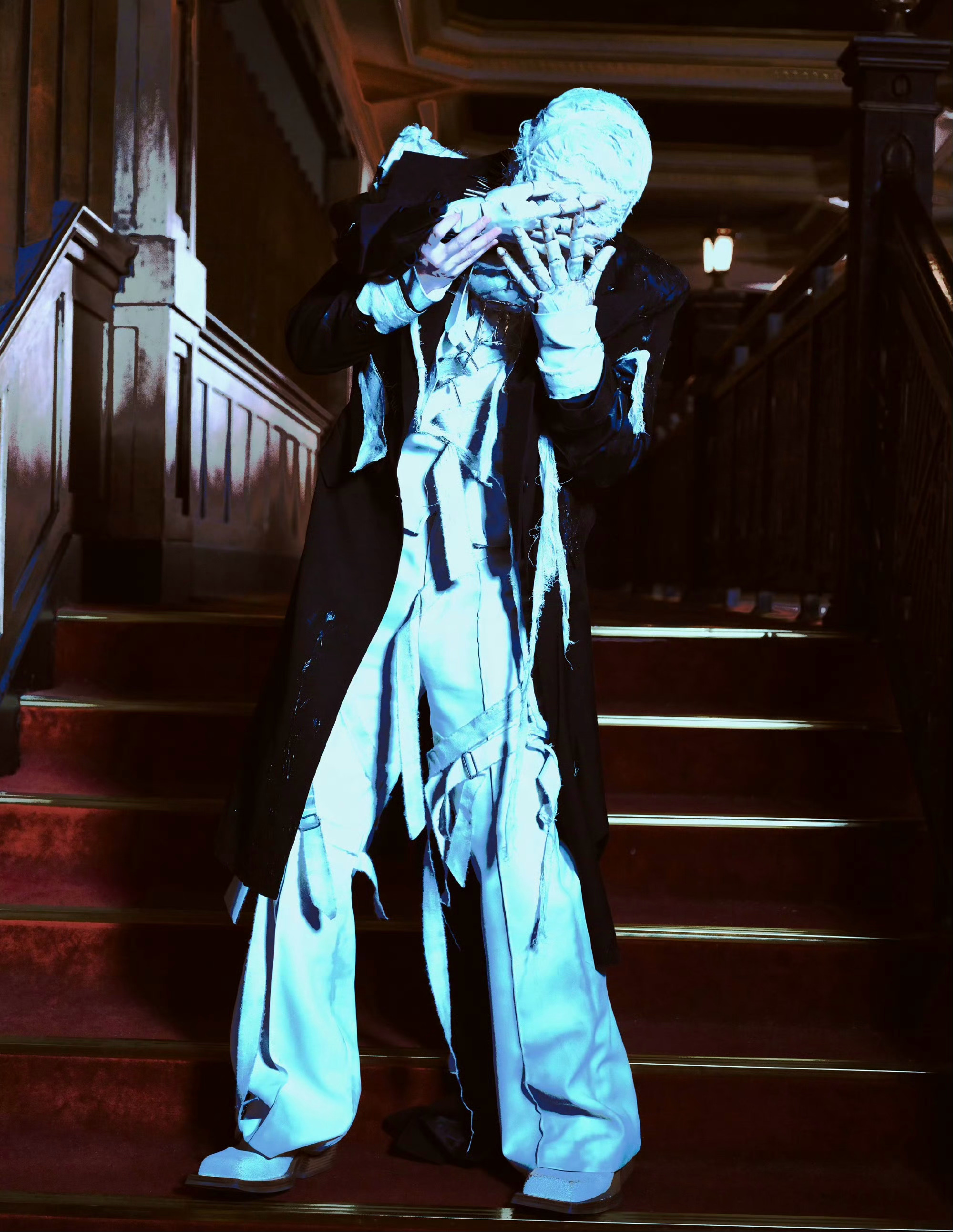 严浩翔 EP《Scary Movie Ⅱ:Same Face》概念视觉第四组大片,延续哥特“暗黑美学”主义,绷带造型(象征伤痛)传递“与恐惧共生,撕碎桎梏”的态度。严浩翔scarymovie2