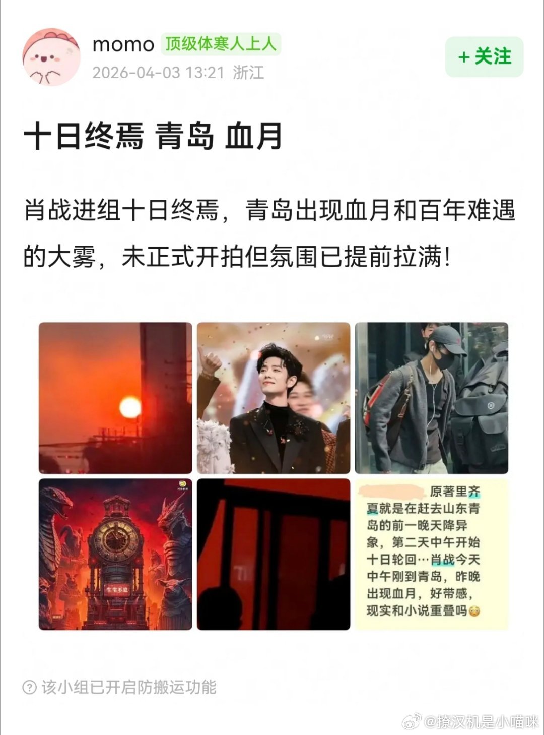 肖战粉丝拼了命营销:肖战进组十日终焉,青岛出现血月和百年难遇的大雾,未正式开拍但氛围已提前拉满!