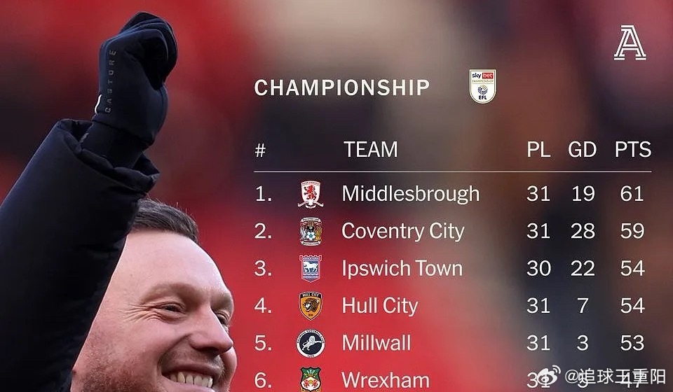 北京时间4月3日19:30,英冠第40轮将迎来一场决定升级格局的焦点对决,米德尔斯堡(米堡)坐镇河畔球场迎战米尔沃尔。目前,米堡以71分位列联赛第2,处于直接升级区;米尔沃尔积69分排名第4,两队仅差2分,此役堪称价值连城的“6分战”。