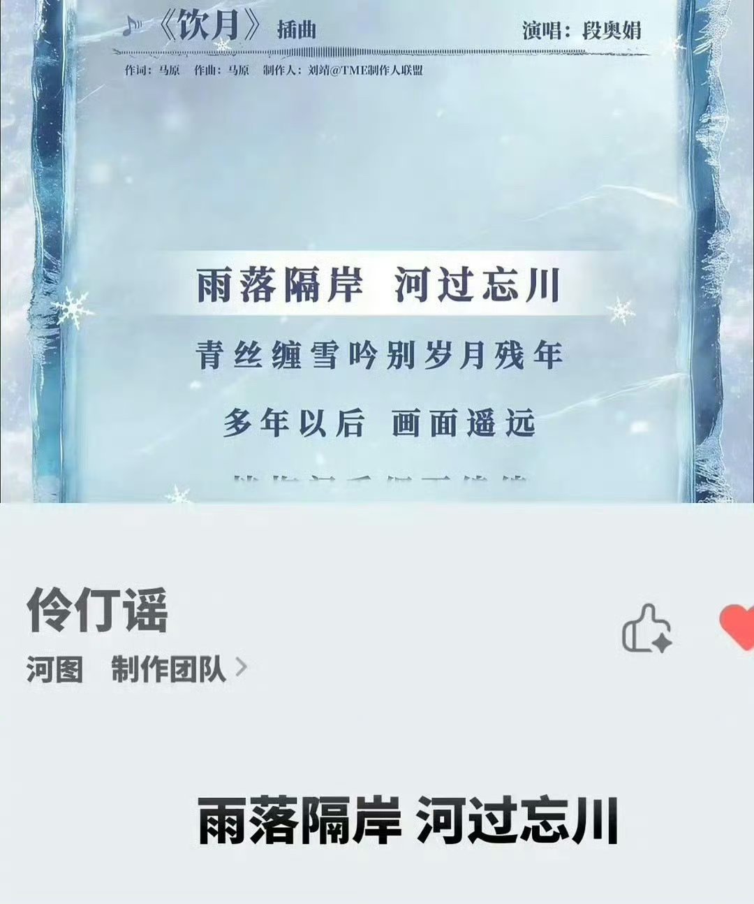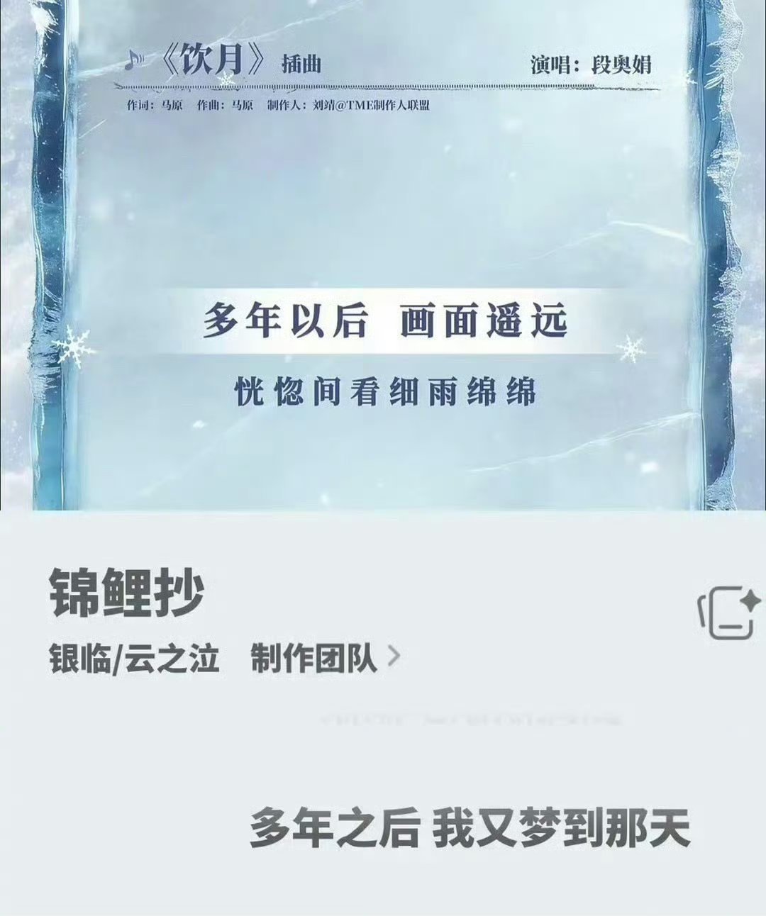 此前,冰湖重生OST《饮月》被指作词抄袭《锦鲤抄》《白头吟》及《伶仃谣》冰湖重生官方回应OST抄袭冰湖重生剧方发布OST抄袭道歉声明