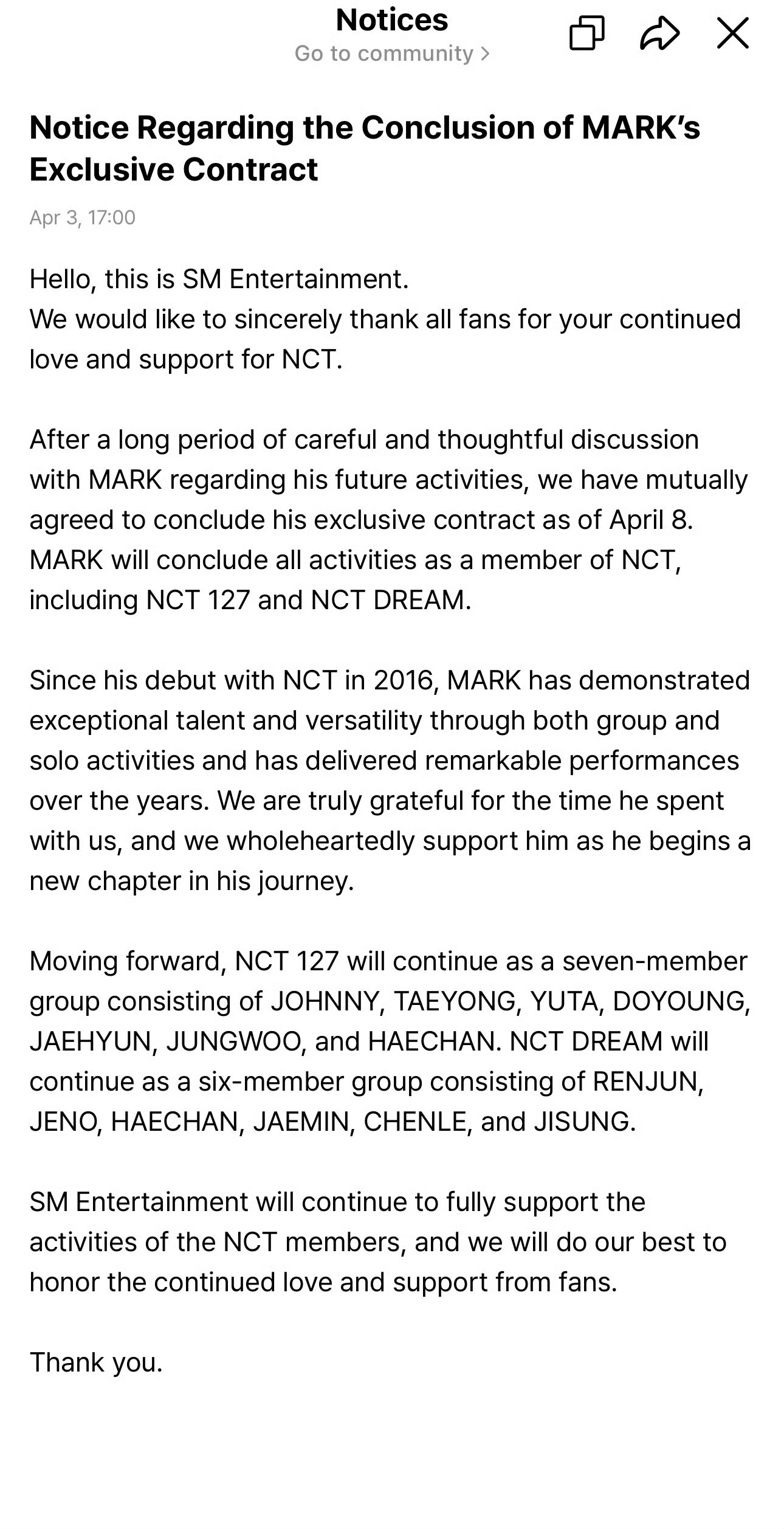 sm官宣与李马克解约,今后将不参与nct活动李马克解约李马克将不参与nct活动