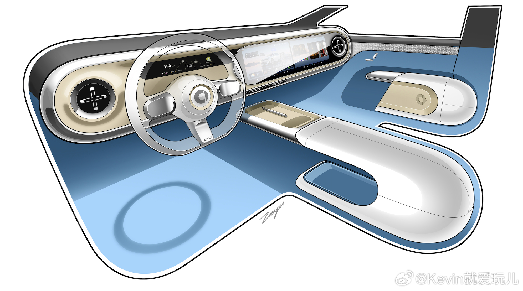 奔驰首席设计官瓦格纳的收官之作来了,献给了全新smart 精灵6号,这次是内饰手绘图可以看到整体的风格科技感很足,同时也和自身调性相结合,同时原本奔驰“先锋”的设计风格,这次在全新smart 精灵6号也体现了。