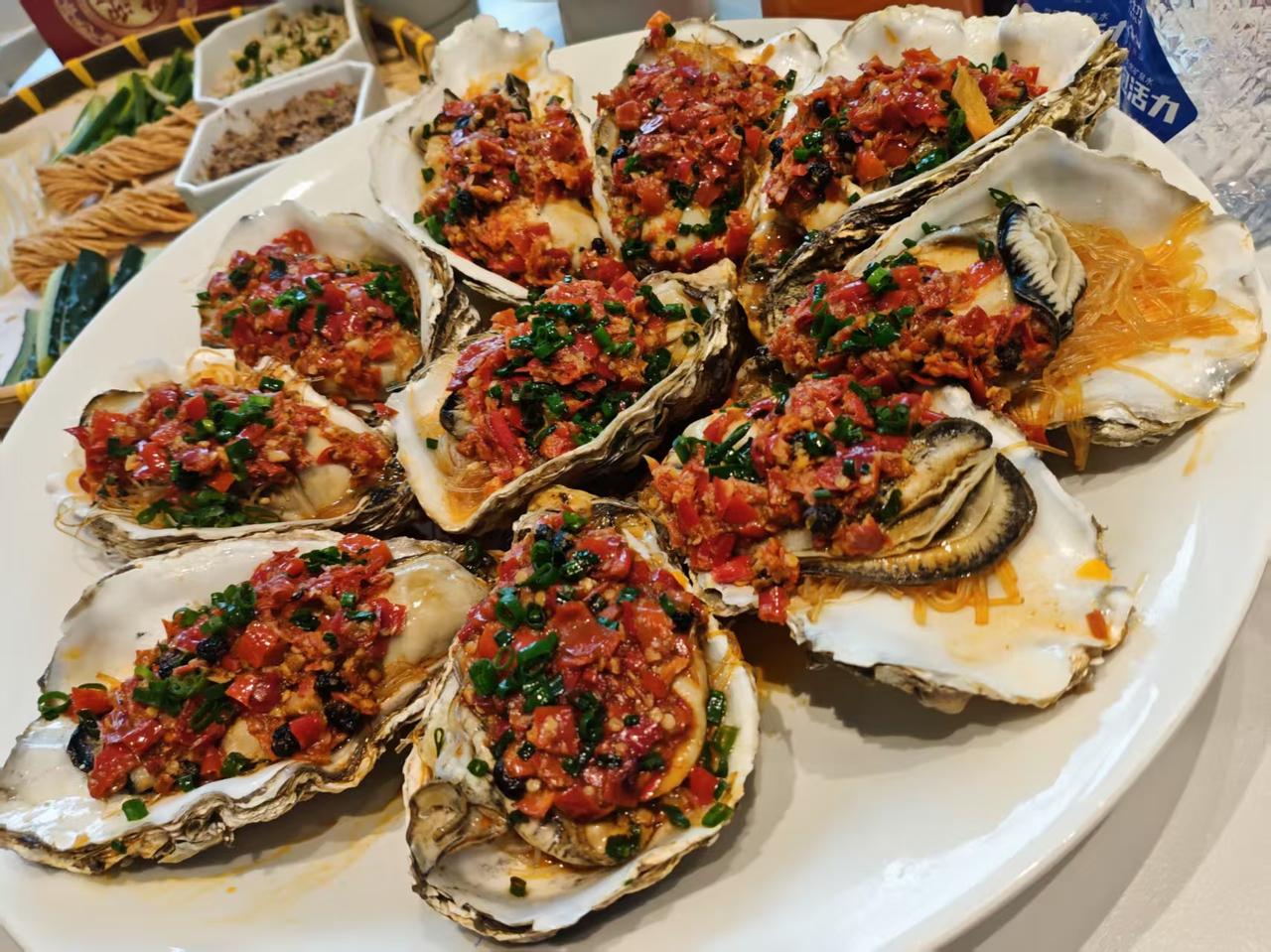 天津人爱吃更爱吃海鲜,这家蚝鲜YOU生蚝直接封神!美食爱好者味觉视觉双冲击!没想到随随便便找个地方吃饭,结果直接被惊艳到原地封神! 蚝鲜YOU大排档坐落在海棠花盛开的五大道旁,门口的西府海棠开得正盛,红砖灰瓦的复古小楼,搭配超大的红色招牌,一眼就能找到!一排排红彤彤的灯笼从楼顶垂下来,中式烟火气直接拉满,远远看过去就特别热闹喜庆,太有天津那味儿了!店内舒适明亮、一尘不染,细节处全是用心太懂食客了! ⭐ 高压锅巴掌大生蚝:端上来的时候锅气直接扑脸,掀开盖子那一瞬间,生蚝的鲜味儿直接冲鼻子!每一个都比我手掌还大,蚝肉肥嘟嘟的,咬一口直接爆汁,鲜到天灵盖发麻!一口一个根本停不下来! ⭐ 辣辣辣剁椒生蚝:本来以为剁椒生蚝就是普通的辣口,结果一口下去直接惊艳!现剁的小米辣剁椒铺满整个生蚝,红亮油润,刚端上桌那股鲜辣香气直接冲鼻子!一口下去,先是剁椒的香辣在嘴里炸开,紧接着就是生蚝本身的清甜爆汁,辣得过瘾、鲜得纯粹,两种味道在嘴里疯狂碰撞,越吃越上头!爱吃辣的海鲜爱好者真的闭眼冲! ⭐ 海胆水饺:皮薄得近乎透明,能隐约看到里面金黄饱满的海胆内馅,一个个圆滚滚的,看着就超有食欲!咬开的瞬间直接封神,海胆馅超足,绵密细腻,完全没有腥味,只有海胆最纯粹的鲜甜在嘴里炸开! 爆膏奶油虾、辣炒花蛤、清蒸拼鱼,每一口都是新鲜的味道,红烧牛窝骨等天津菜做得也地道,完全不踩雷! 服务超夸!从进门引导就座,到点菜耐心介绍,再到吃饭时及时添茶加水,全程都贴心到不行,上菜速度还快,完全不用等,体验感直接拉满! 清明假期来五大道逛海棠花的宝子们,别再瞎找吃的了,直接冲这家蚝鲜YOU,绝对让你吃到扶墙出,满载而归!