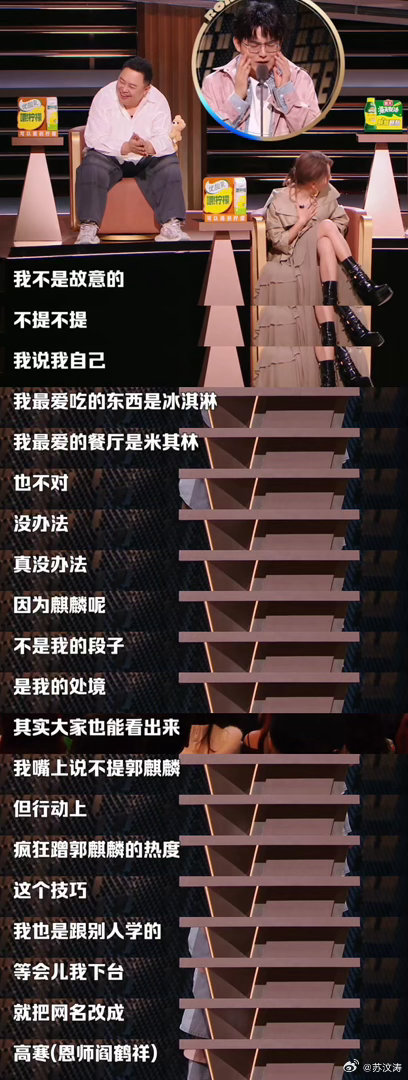 主咖和Ta的朋友们 我的评分:《主咖》看了8期最喜欢高寒这段不像其他人吐槽都是蜻蜓点水轻描淡写甚至还有点解释升华的意思,高寒吐槽阎鹤祥表里不一立牌坊这段很完整,看得出来是真的很鄙视这种行为。不像小奇抽象纯骂的人设,他吐完也知道以后可能没有机会再接这种节目了,但是他不在乎,他就是要表达,就像当时怼罗永浩一样。