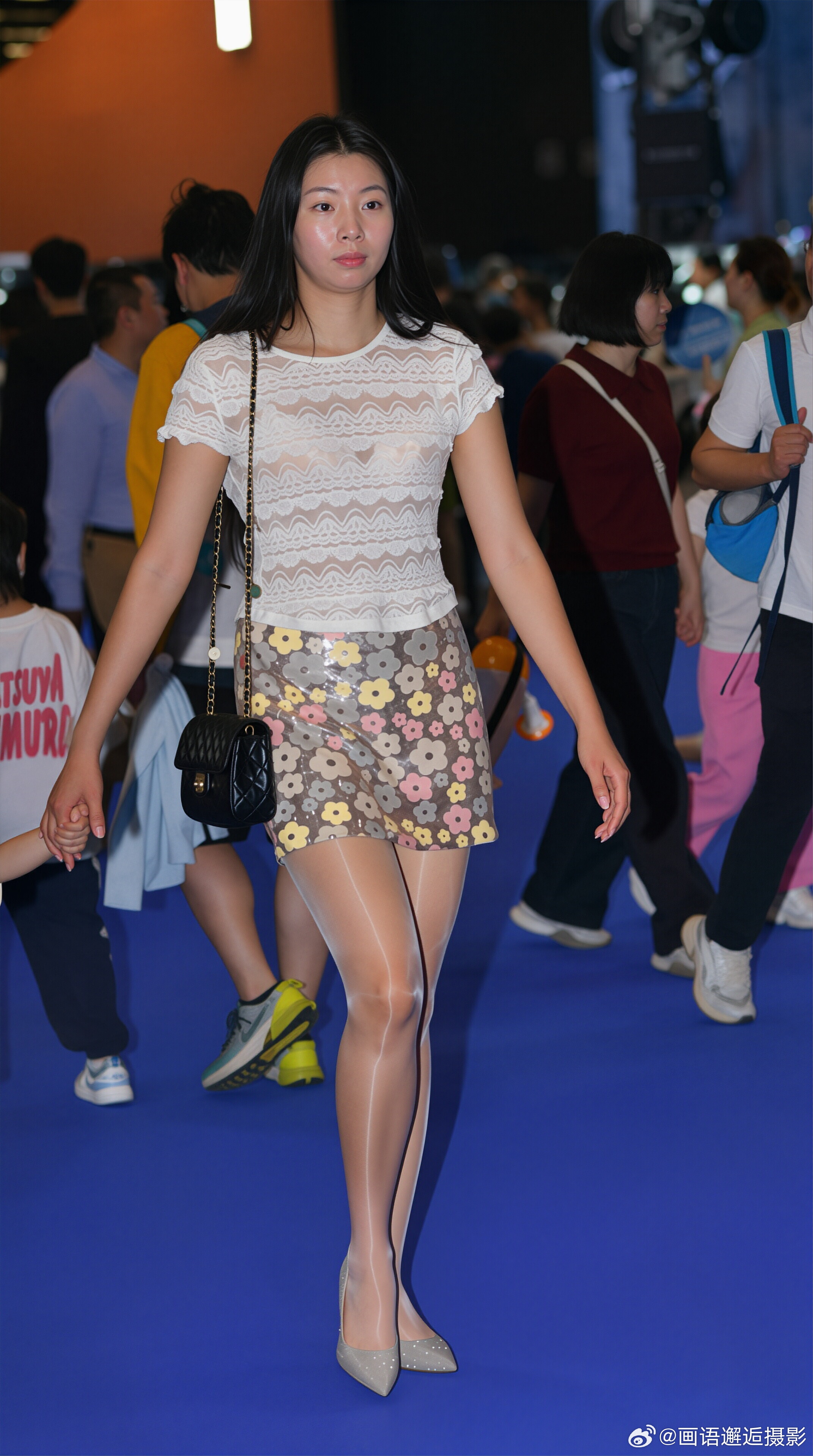发现你的魅力 白色蕾丝上衣搭配碎花短裙,尽显温柔甜美。银色高跟鞋提亮整体造型,