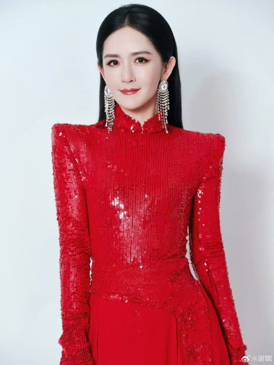 谢娜红装热烈开场谢娜红色直角亮片裙娜姐这组也太美了吧!