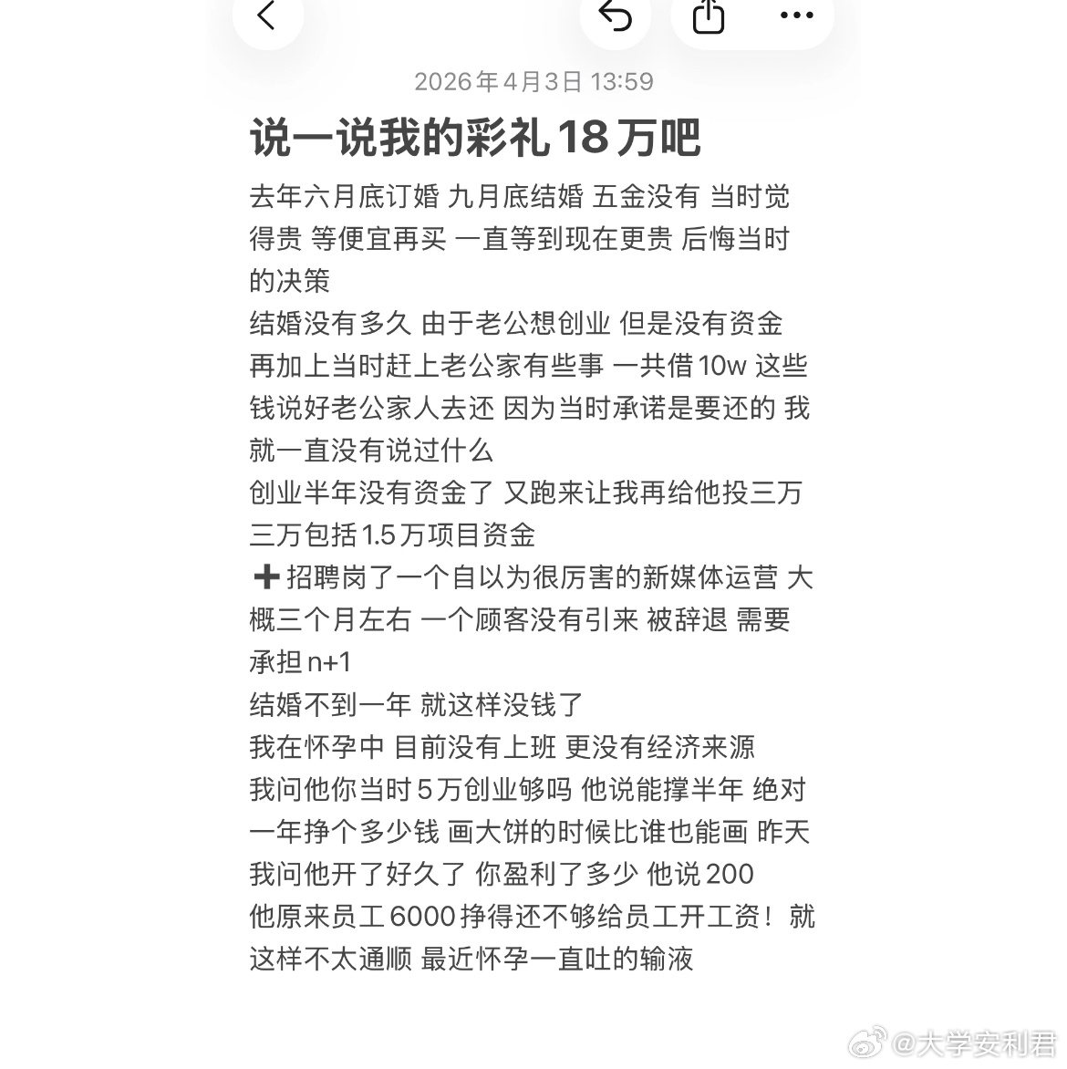 看到一个29岁的女孩子,本来已经定婚了,收了6万彩礼和5金。在领证之前,男方提出