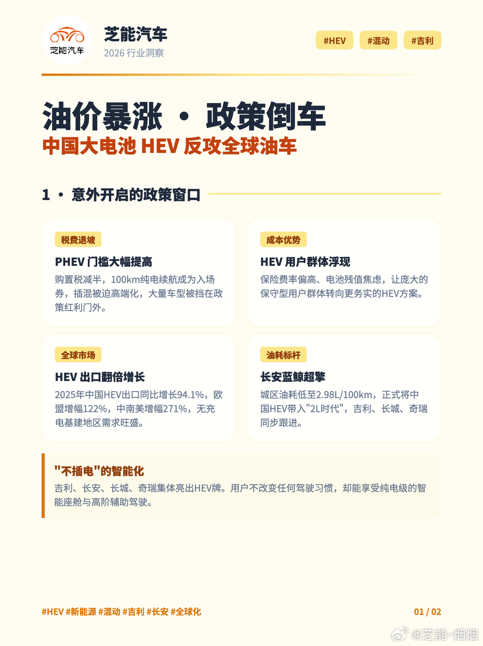 2026 年全球石油危机叠加国内新能源政策调整,HEV 混动意外迎来窗口期。
