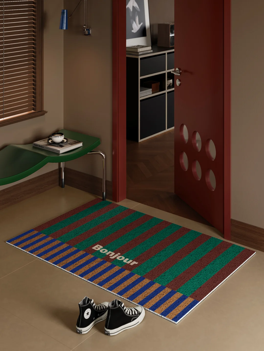 谁能拒绝把法式慵懒踩在脚下啊!! 一眼沦陷的复古撞色条纹 像把整个巴黎的慵懒都揉进了地垫里 - 丝圈软弹到跺脚! 鞋底的泥沙全兜住 扫两下就干净,懒人直接狂喜 玄关一铺,氛围感直接封神 中古风 / 法式 / 孟菲斯风家 闭眼入都不会错! 每一次归家都是奔赴一场浪漫的仪式感💌