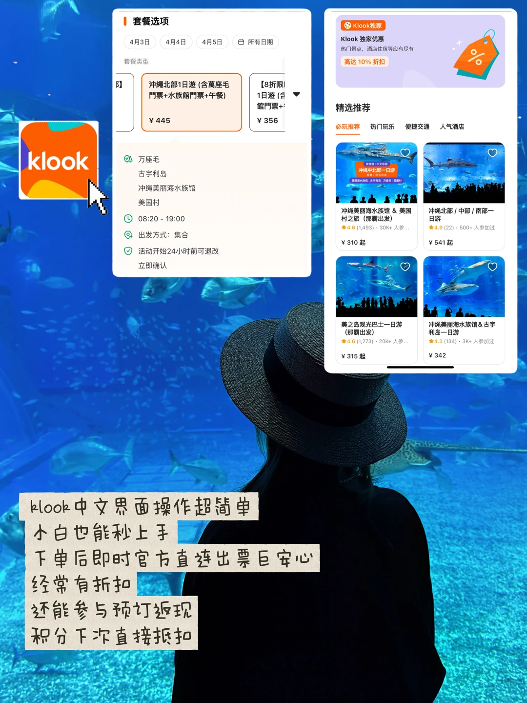 ✔上面经常有折扣,我订的冲绳美丽海水族馆&美国村线路,比单独买景点票便宜30%