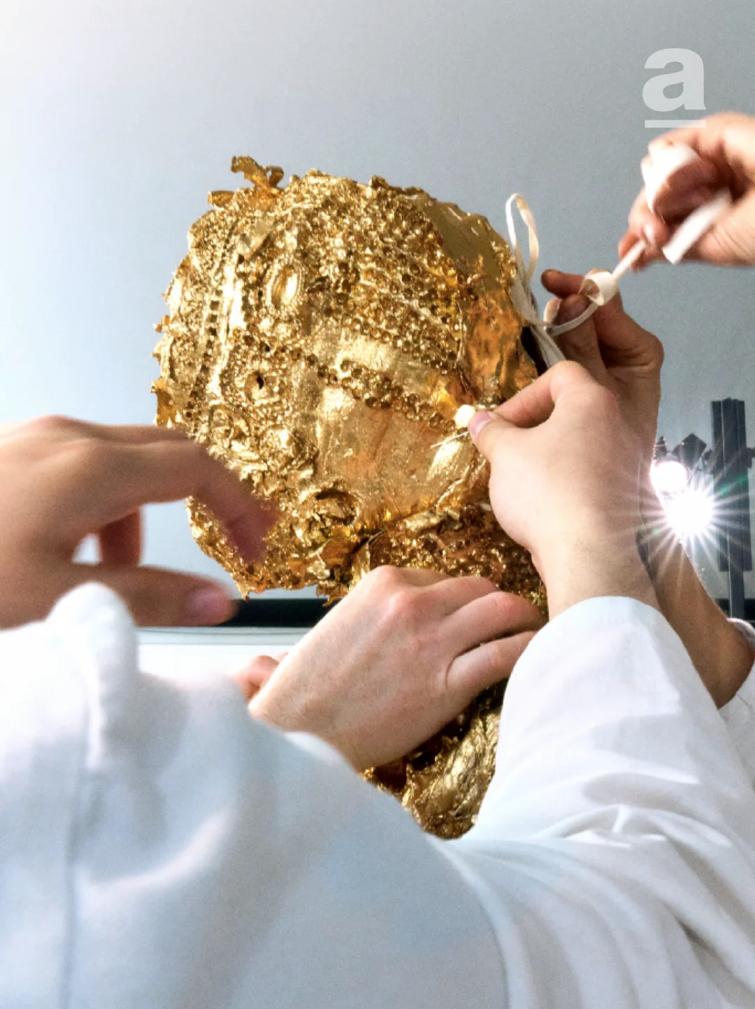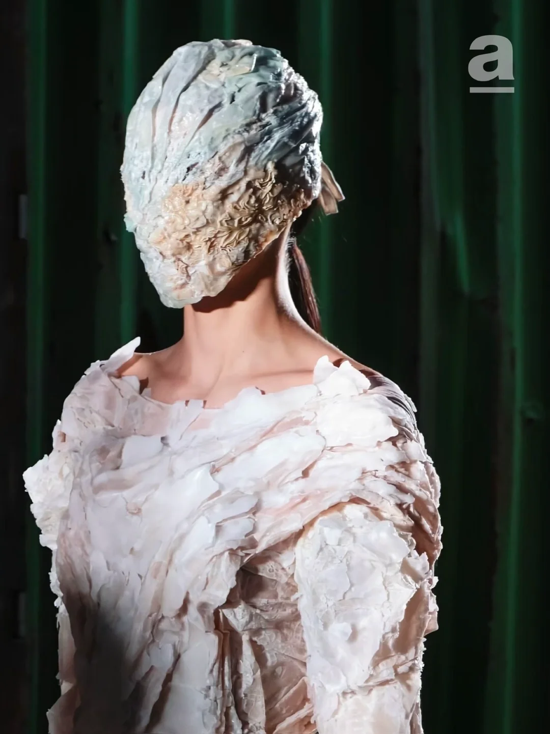 本场秀最震撼的亮点是破碎瓷片拼接而成的面具、上衣和裙装,直接致敬创始人Martin Margiela在1990年秋冬Artisanal系列中极其经典的破碎瓷片马甲。