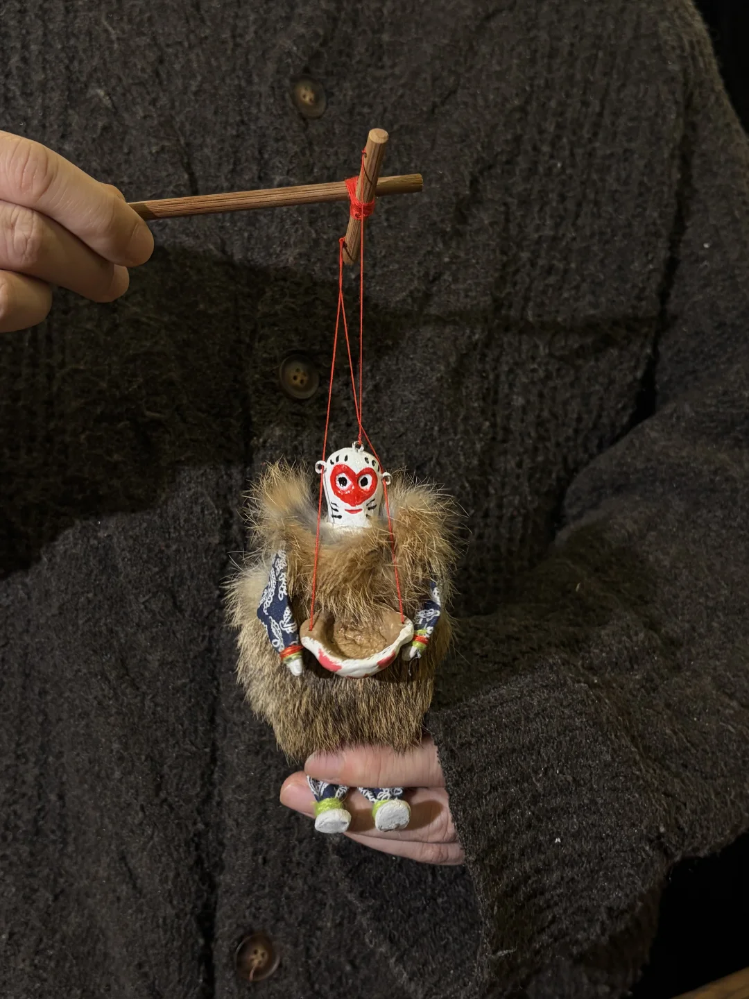 但我们觉得这项非遗很好玩!! 一提一拉之间 小猴完成变脸动作 非常有趣🤔 把玩间有点像提线木偶的感觉 这是来自河南的猴加官 在中原地区流传200多年的非遗手艺 制作它的手艺人要会捏会画 甚至还要懂得戏曲知识 集泥人、脸谱、布艺、装置于一身 猴同侯🐵 侯又加官 意味着封侯又加官 有着封官加爵、福禄双全的寓意 现在会的人少之又少💔 即便学习也要具备天赋和长期的努力 拦截了一大片想学习的人 既有趣又能把玩 这样的非遗一定要被人看见!!! 这次我们想把它做成挂件 有人会喜欢吗?