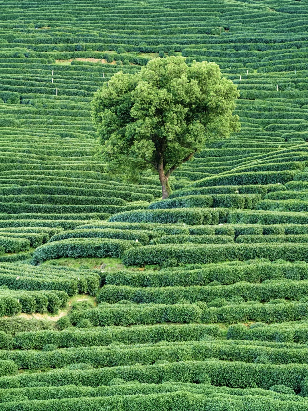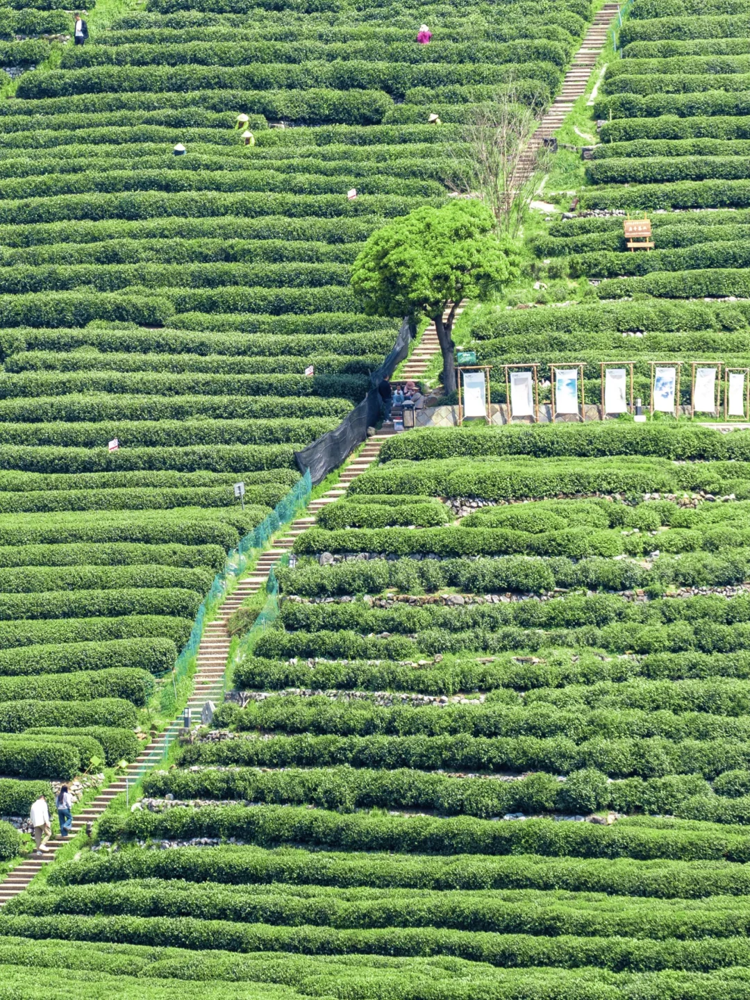 超大片的茶园,春季还会有茶农们穿梭在茶园里,别有一番意境