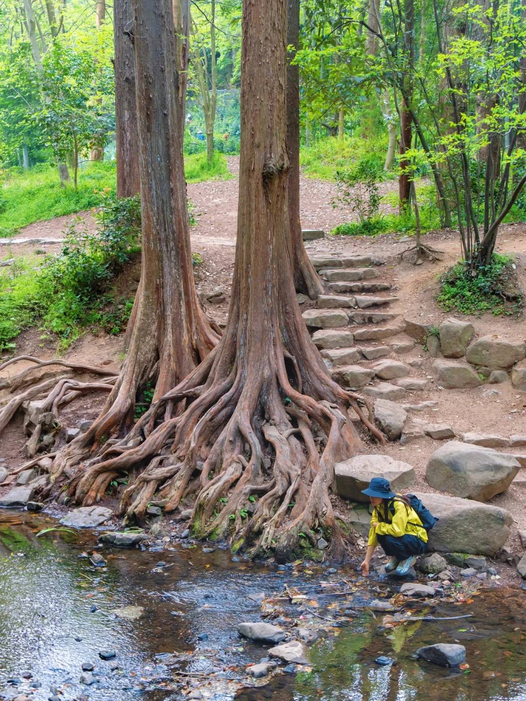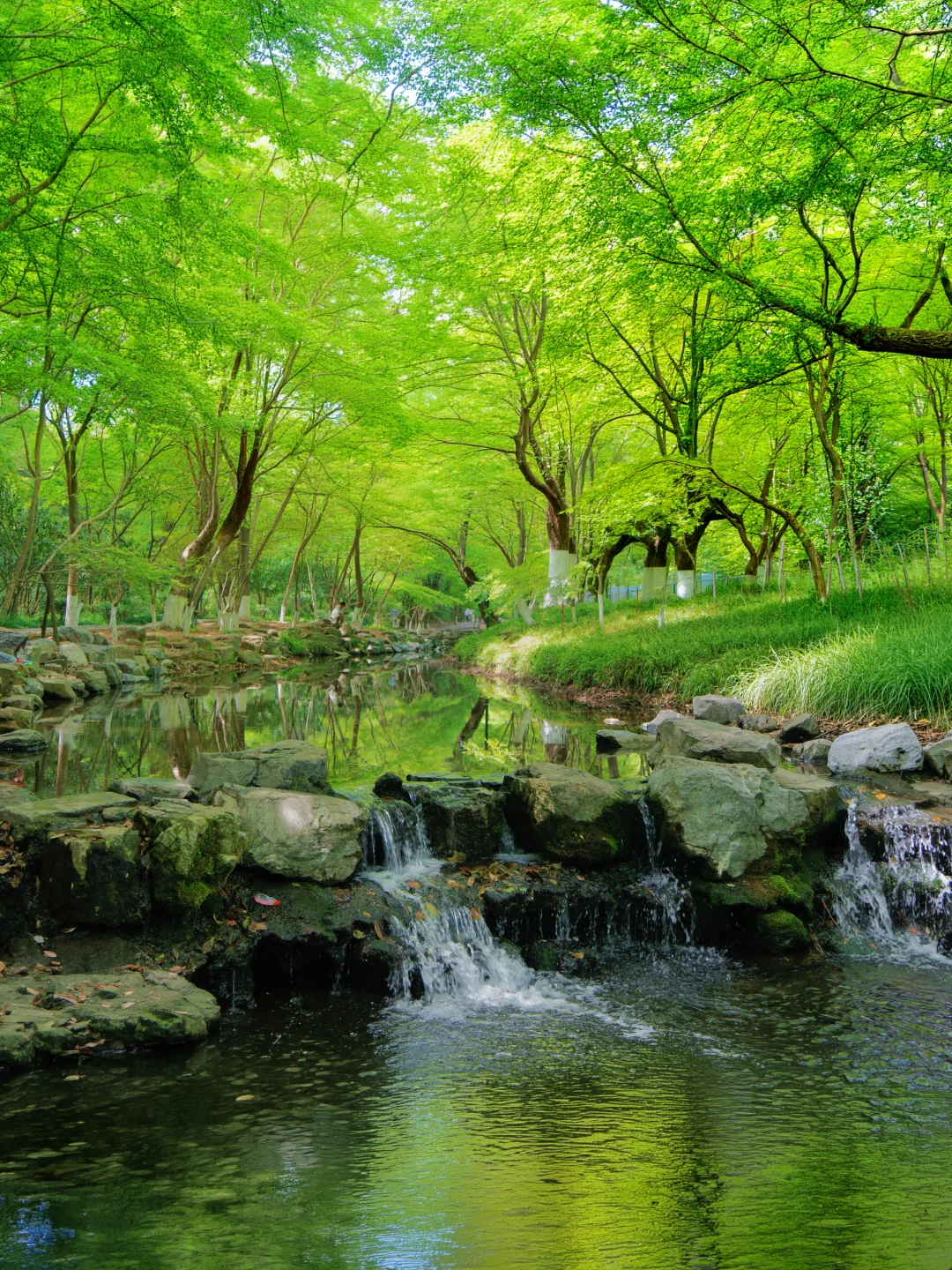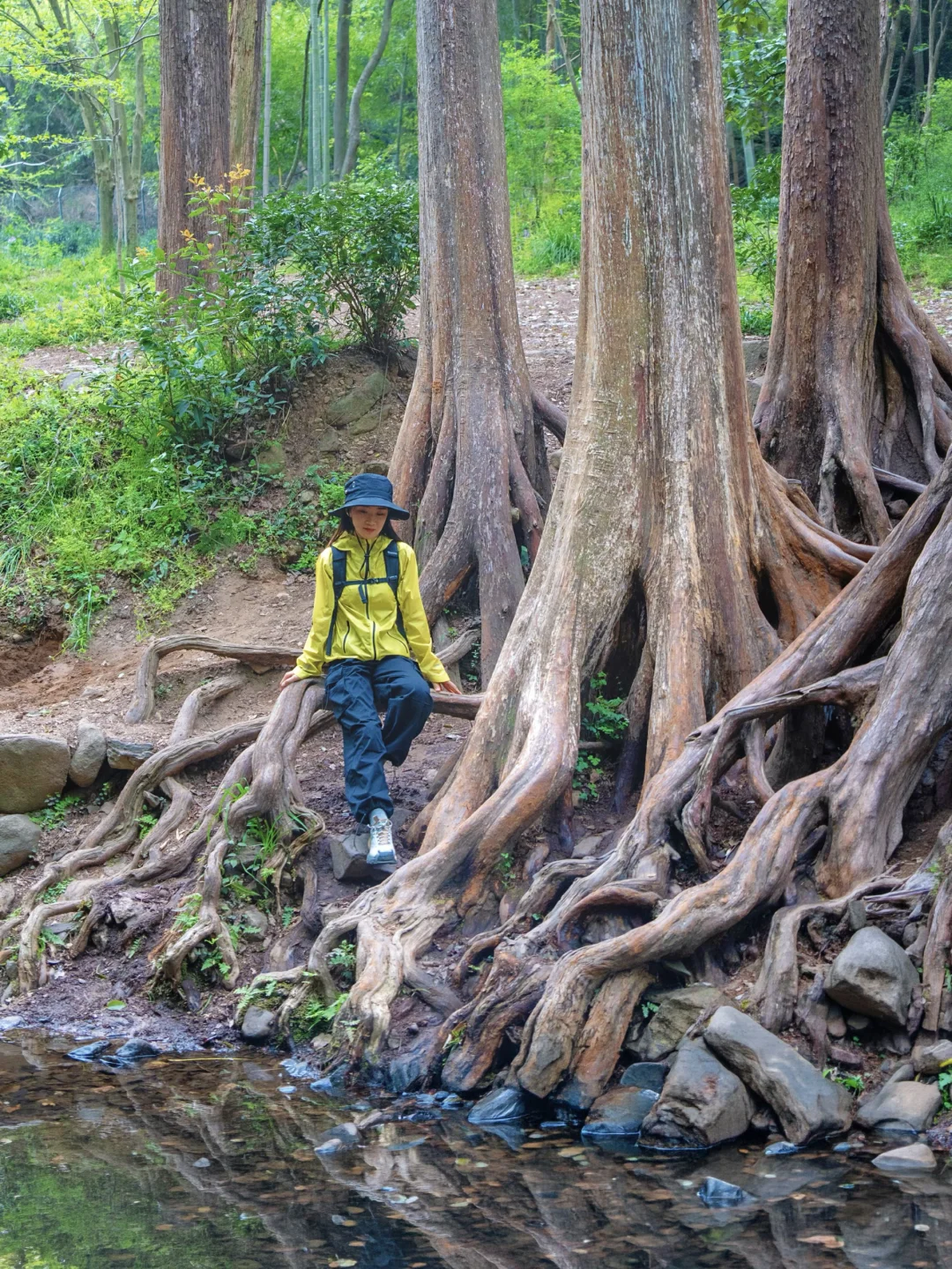 碧波荡漾的溪中溪,还有八觉亭旁边飞流直下的瀑布,一定要打卡!游玩好瀑布往九溪烟树公交站的方向走会经过网红大树根和一号桥,这两个位置也都很出片