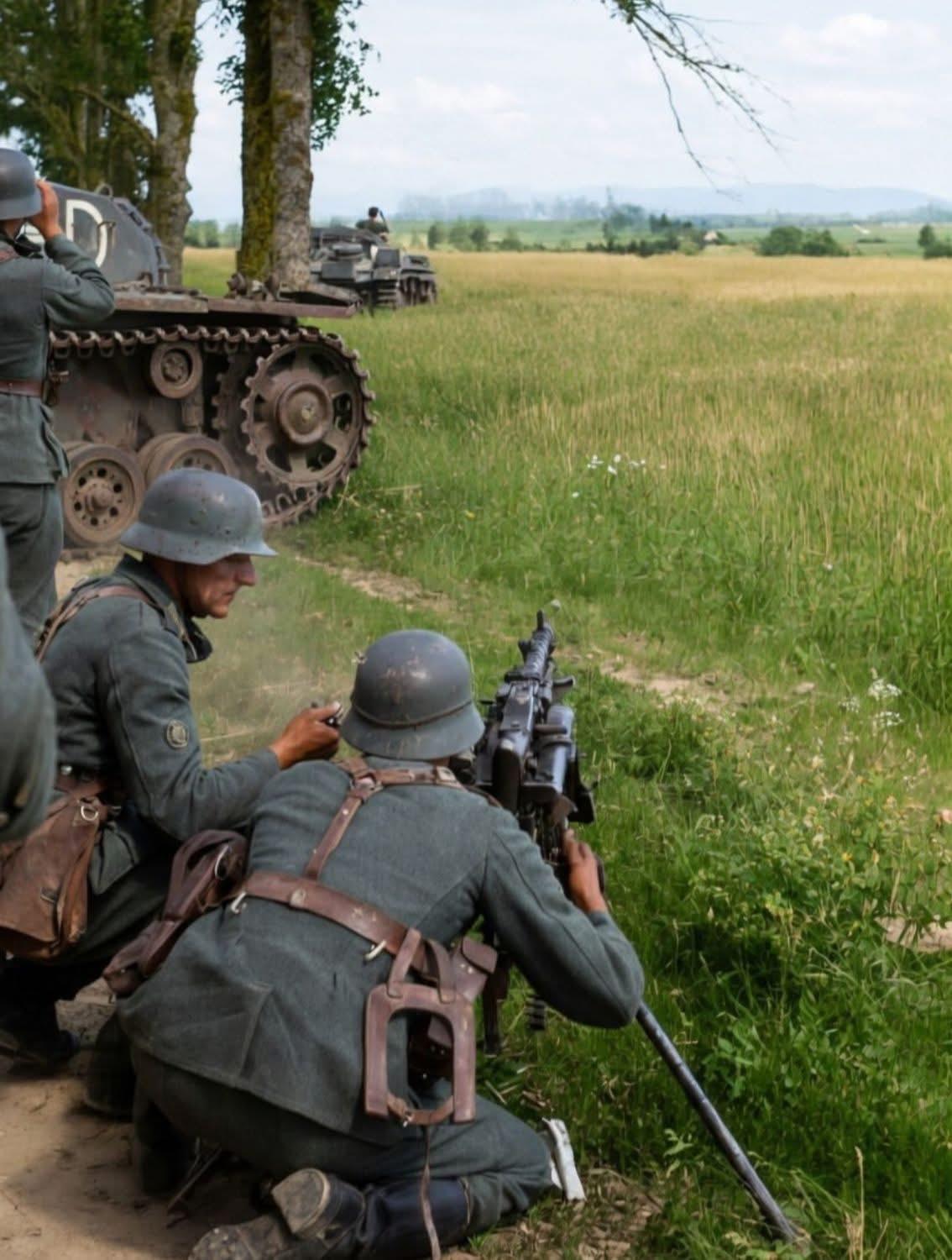 二战德军真是作战历史留影!大家认得出手持的枪械型号啊了?貌似只有一张图里士兵拿的步枪而非机枪! 看图提问环节来了,请问图几为非德军影像而是芬兰士兵?德国二战老照片 二战历史图片 老照片