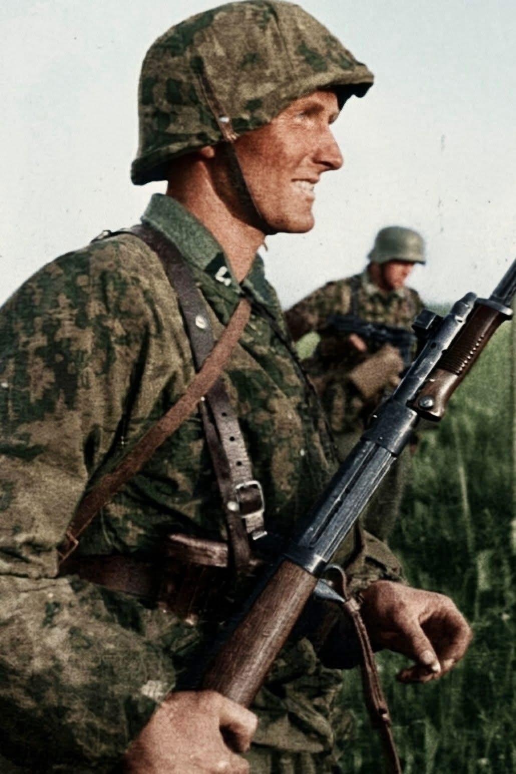 残酷的东线战斗间隙,德军抓紧时间休憩。二战彩色照片