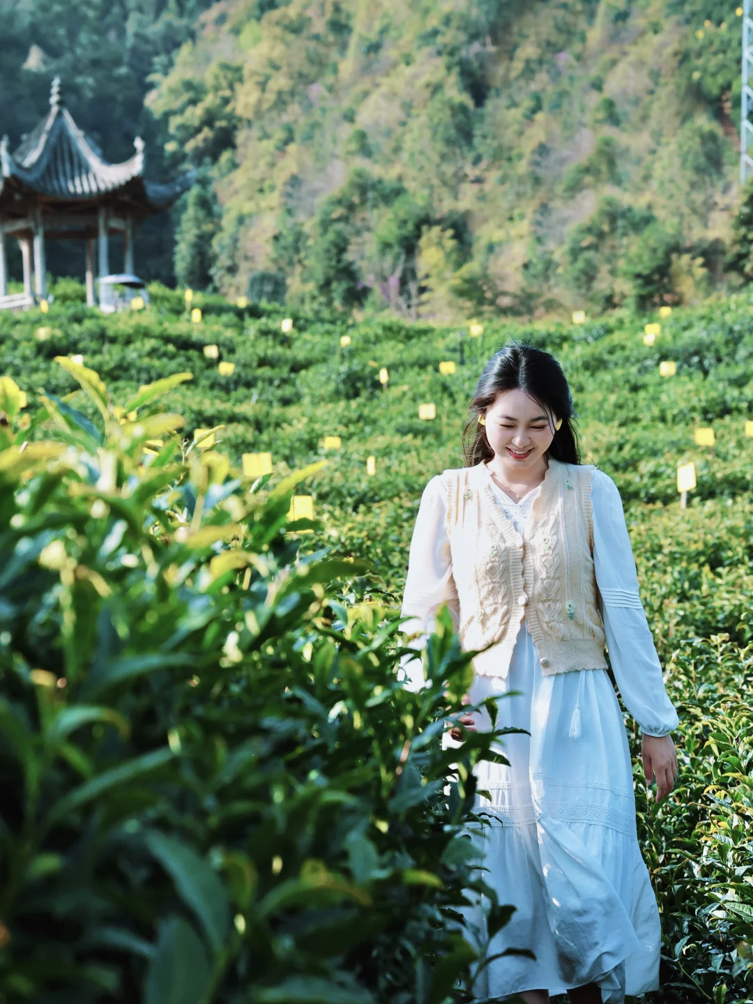 ②春季赏花采茶正合适,穿浅色系衣服拍照更出片
