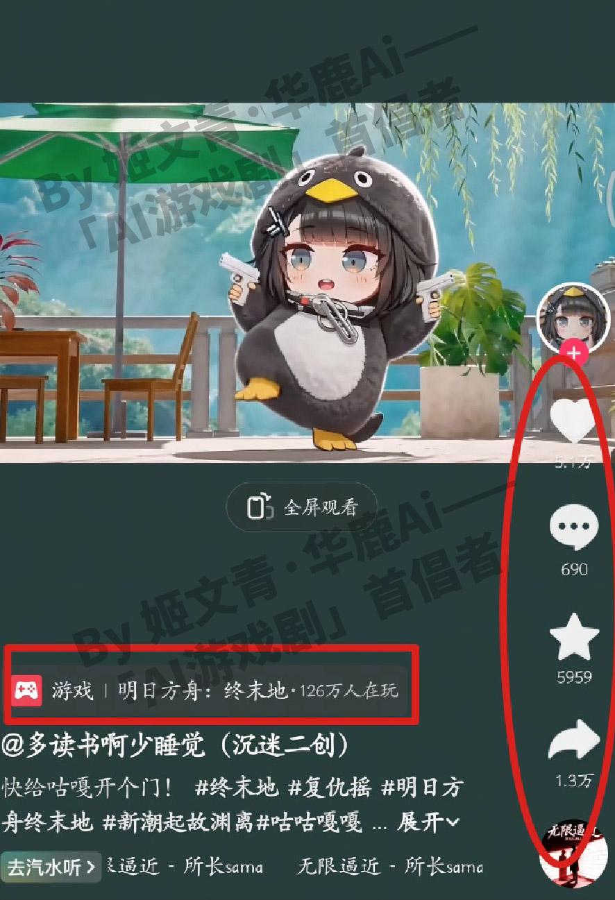 还有游戏的引流:在抖音b站这类平台,你做的AI游戏剧可以很方便的挂上游戏的入口,只要有用户下载注册在游戏里消费,你都有持续的收益,并且这个收益它是持续的,只要你的视频在,他就可以产生,这是真正的复利。