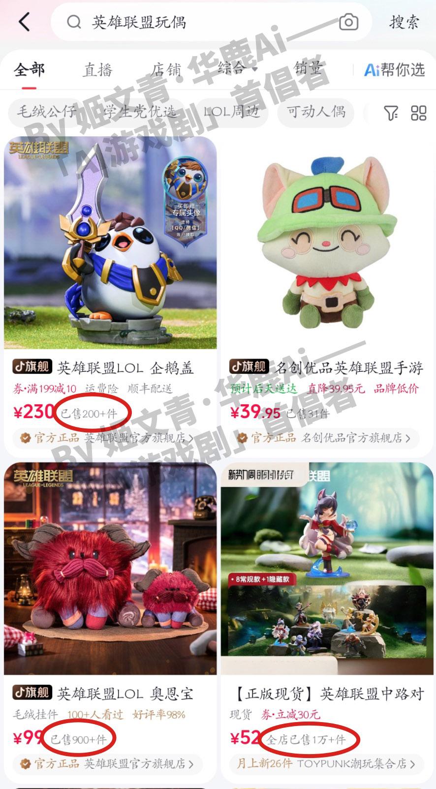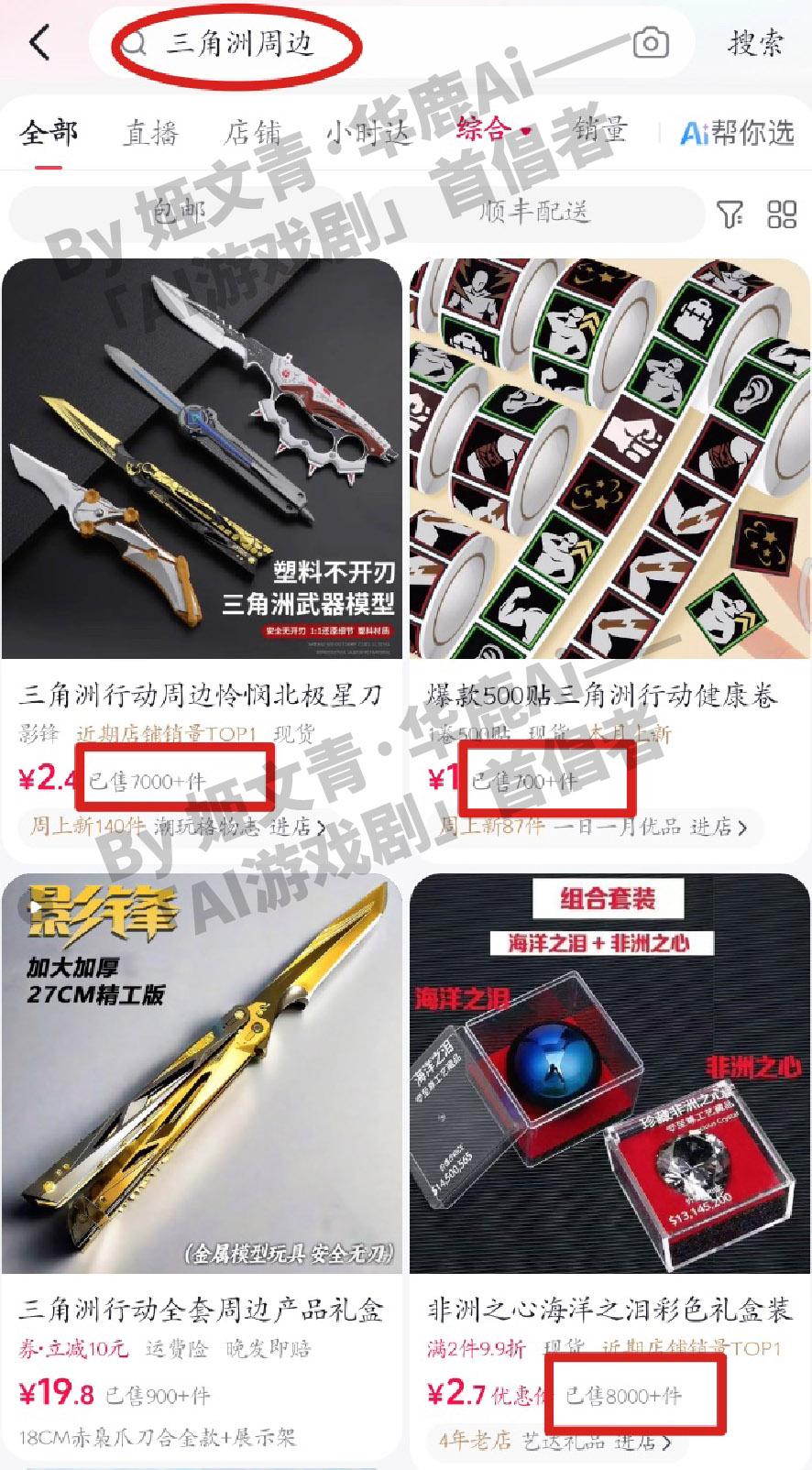 此外,你还可以游戏带货:像三角洲,像英雄联盟,像CSGO都有大量的周边产品,你也可以很顺理成章的去进行带货,不会像一般的AI漫剧那样无货可带。
