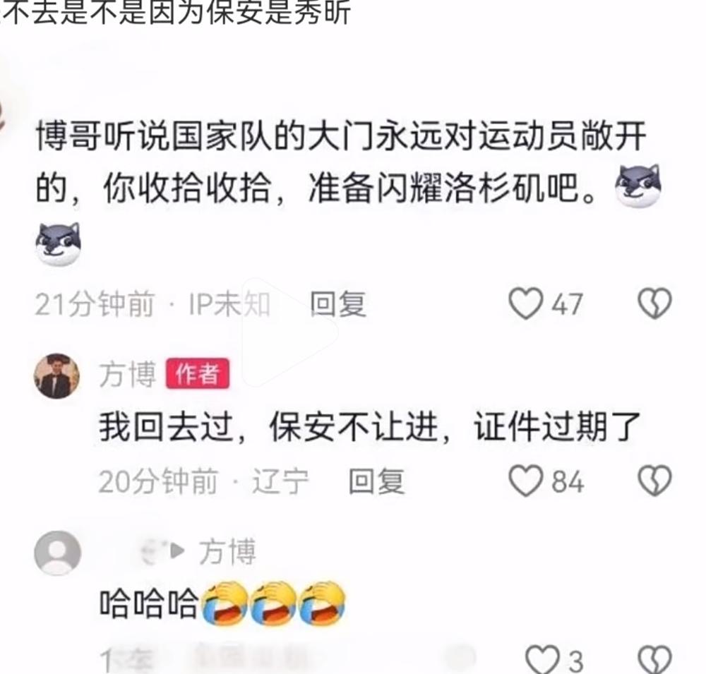 方博太幽默:国家队的大门永远对运动员敞开, 我回去过, 保安不让进, 证件过期了! 方博最近更新视频, 还是那么抽象, 一直敲门✊的动作不停, 配文“国乒的大门不是对所有人敞开吗? 为什么保安不让我进去? 网友,换个左手敲就可以啦! 国乒男队正需要人, 方博回去,也许行👍……