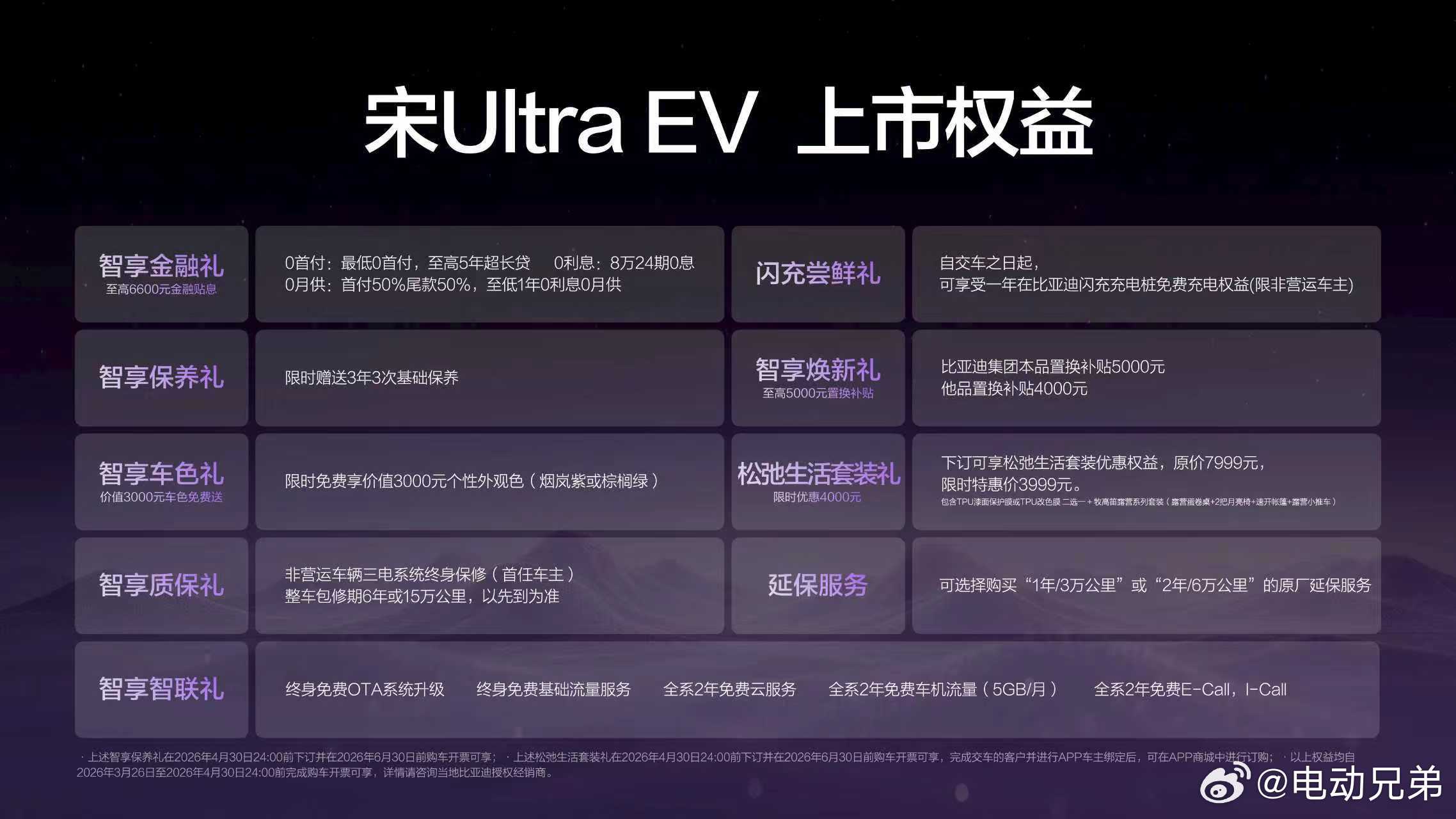 3月26日,比亚迪宋Ultra EV正式上市,官方指导价15.19万-17.99万元,共推出4款车型。新车全系搭载比亚迪第二代刀片电池及闪充技术,凭借“5分钟充好,9分钟充饱,零下30℃只多3分钟”的颠覆性补能表现,真正开启了B级SUV的闪充时代。