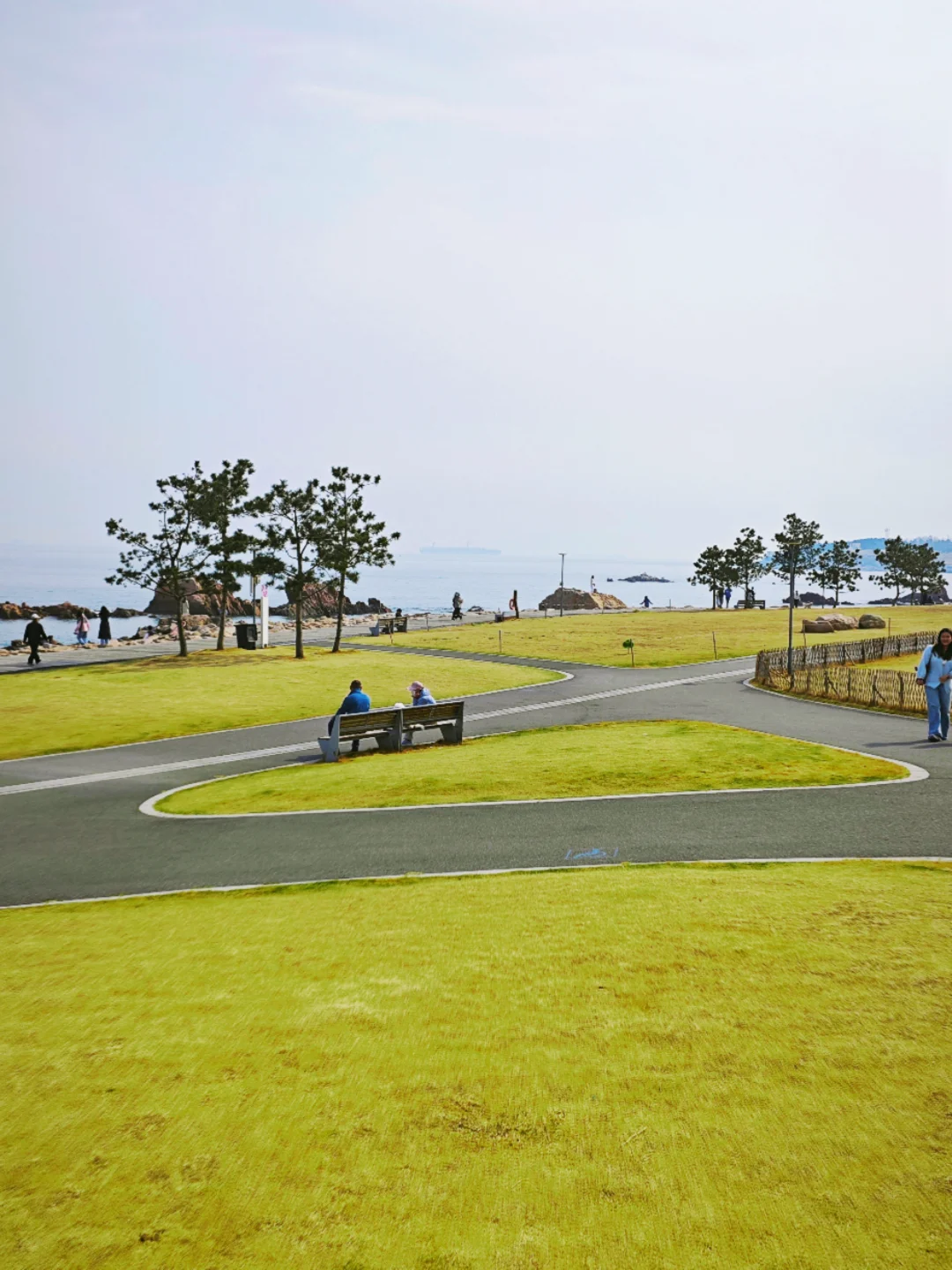 走走停停,傍晚的夕阳会把海面镀上一层温柔橘光