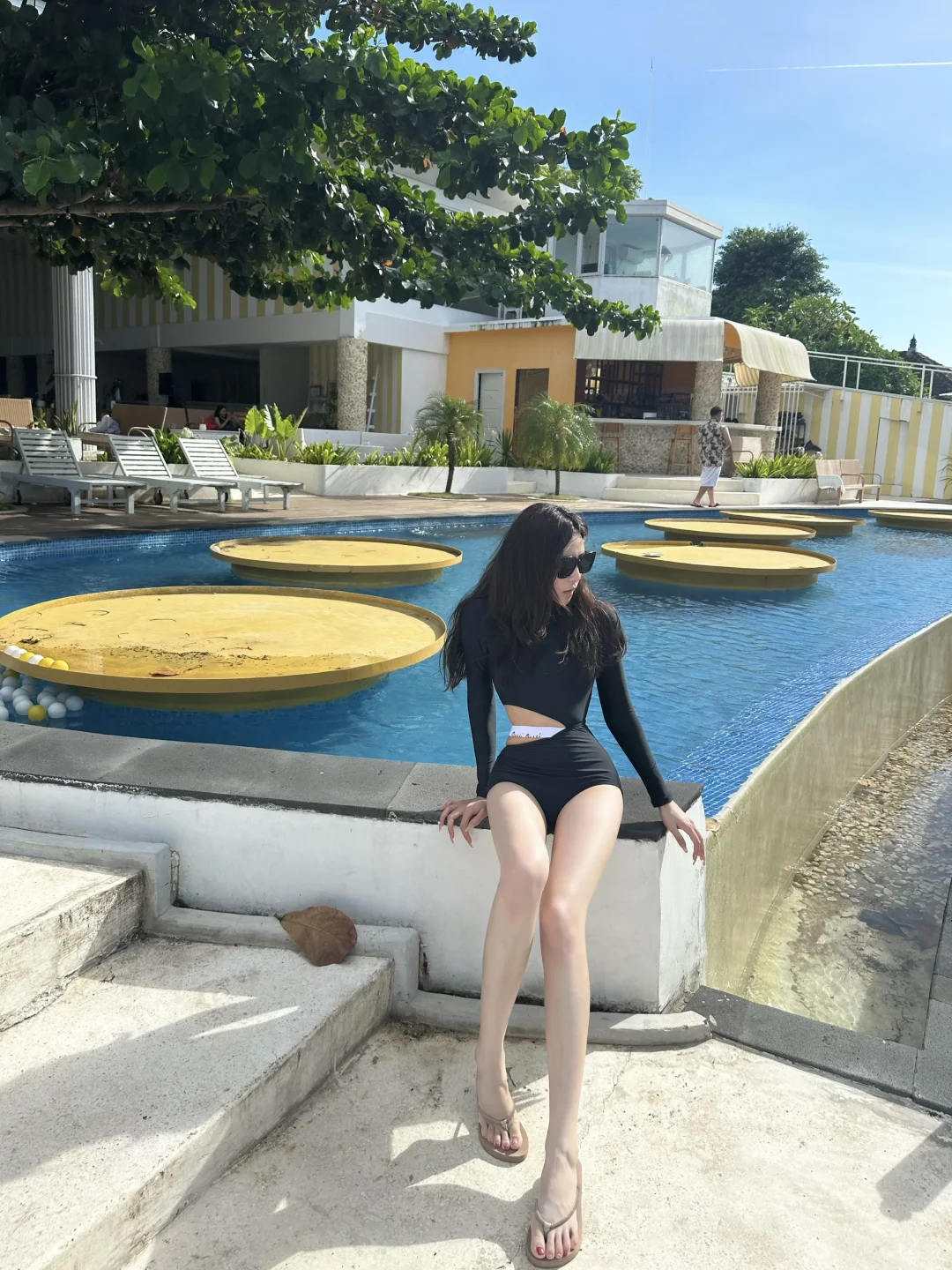 一袭长裙的御姐型美女,那气场简直绝了。就说穿搭,黑色丝绒包臀紧身长裙配黑色缎面吊
