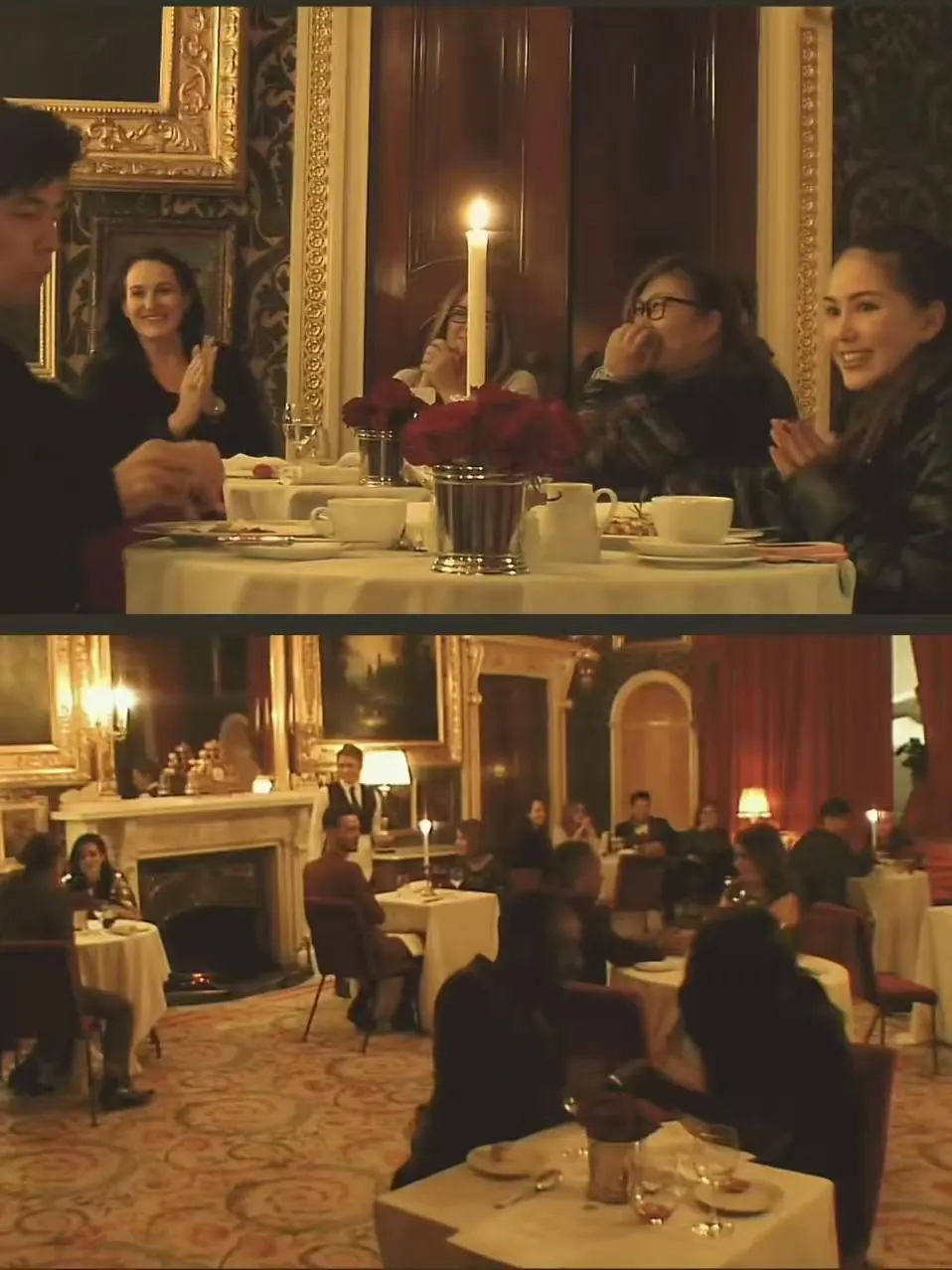 结果到了餐厅以后入座,隔壁桌的客人就一桌桌开始求婚,昆凌看着还很感动,周杰伦则很淡定,因为都是他安排的啊[笑哭R]然后客人们就开始跳舞,他就开始表演了[飞吻R]