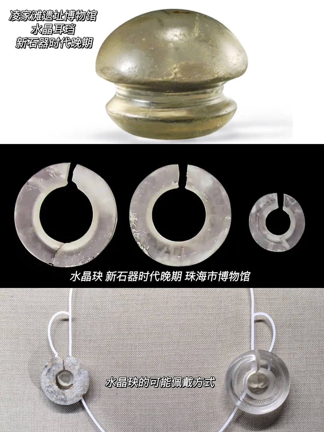 距今5000年前,安徽凌家滩遗址就出土了扁圆球形的水晶耳珰,而此后一直到西周,水晶都更多的以玦形式出现,这同样是一种耳饰,形状环中带有缺口,不仅象征着墓主的身份地位,还有着纳福之用。