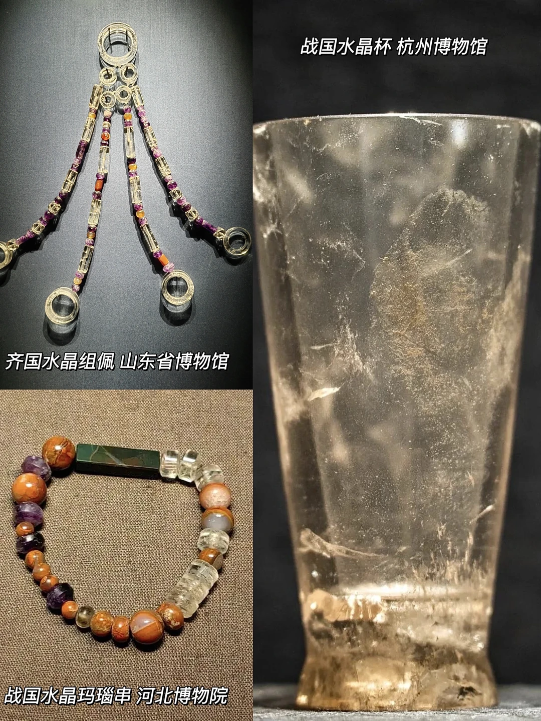 🔮战国时期,齐国盛产水晶,它们多与玛瑙组合,作项链、手串或压襟,可见当时水晶是以配饰为主的。