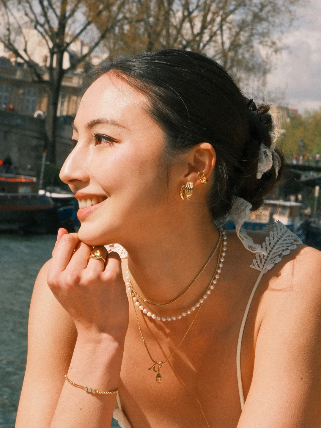 春天的巴黎最适合做什么?答案之一一定是找一个风和日丽的好天气,到塞纳河边去野餐🧺 而跟阳光下的松弛氛围最搭配的,一定是一套藏着巧思的时髦首饰~ 🍴HEFANG「Tea Time collection」餐具系列 🍽️把卷卷叉子戴在耳朵上,颈间是时髦有层次感的卷卷叉子三层链 🥖法棍和迷你曲奇落在腕间,再搭配卷卷意面和黄油欧包戒指,别致设计中藏着对生活的满满热爱。 看着照片上和镜子里的自己,总能被这份日常生活里的小美好治愈,收获一整天的愉悦心情。 🍴首饰:HEFANG ———