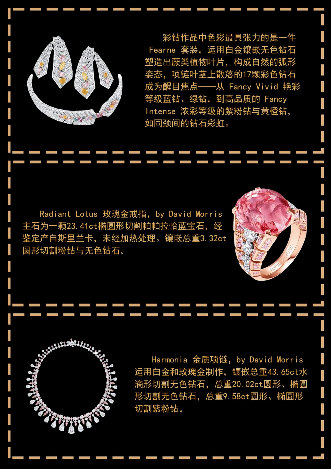 新一季高级珠宝系列——「Legacy of Colour」,共呈现10件独一款珠宝。新作致敬创始人 David Morris 对天然彩色宝石的热爱,遴选艳彩蓝钻、绿钻及帕帕拉恰蓝宝石、哥伦比亚祖母绿等珍罕彩钻与贵重彩色宝石,通过接近完美的切割比例与富有表现力的设计,最大限度彰显天然宝石的色彩魅力。