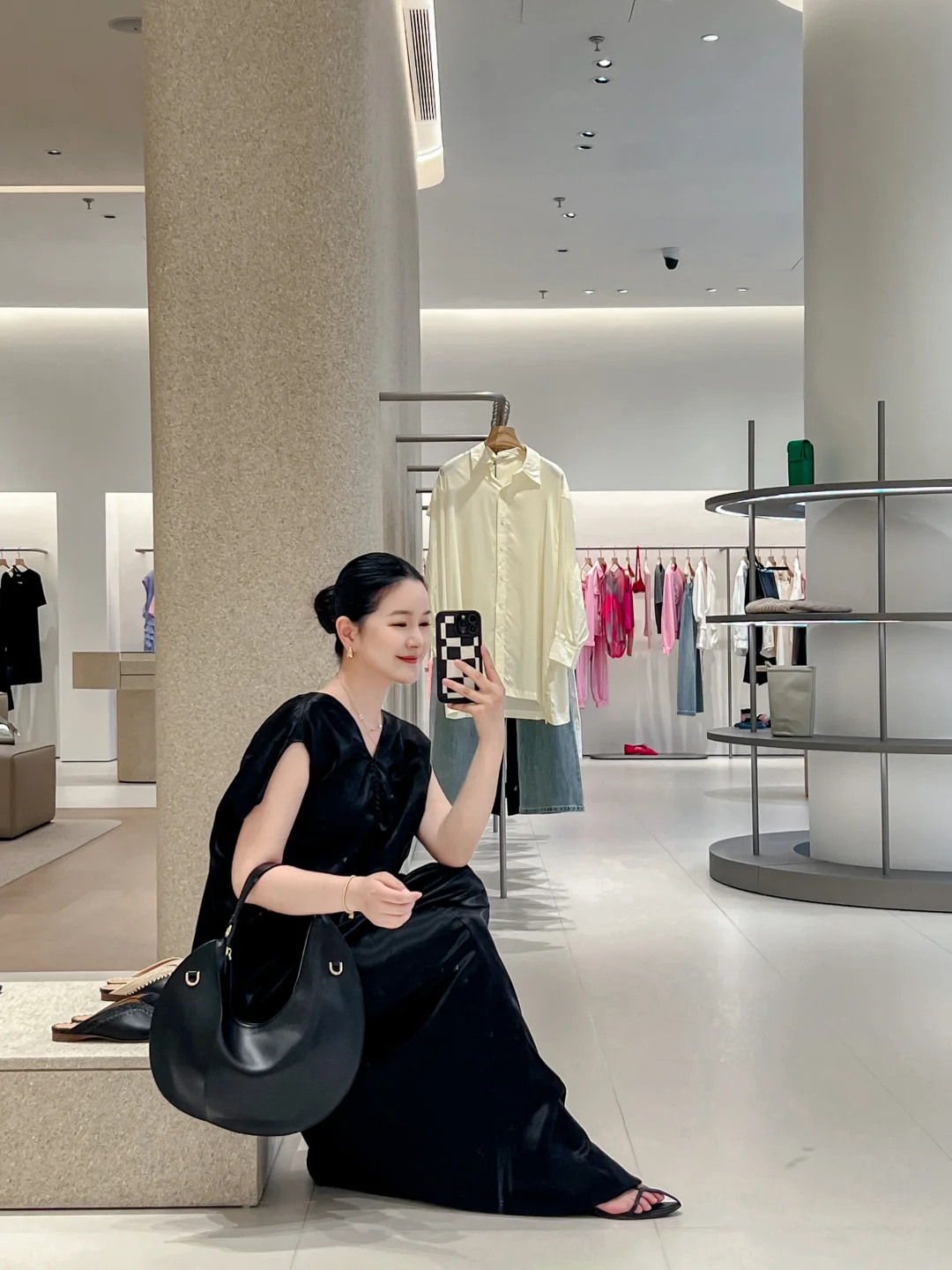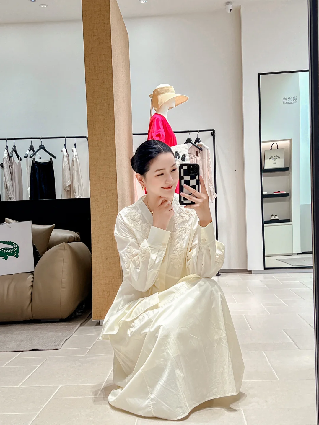 试穿了剪裁利落的连衣裙
