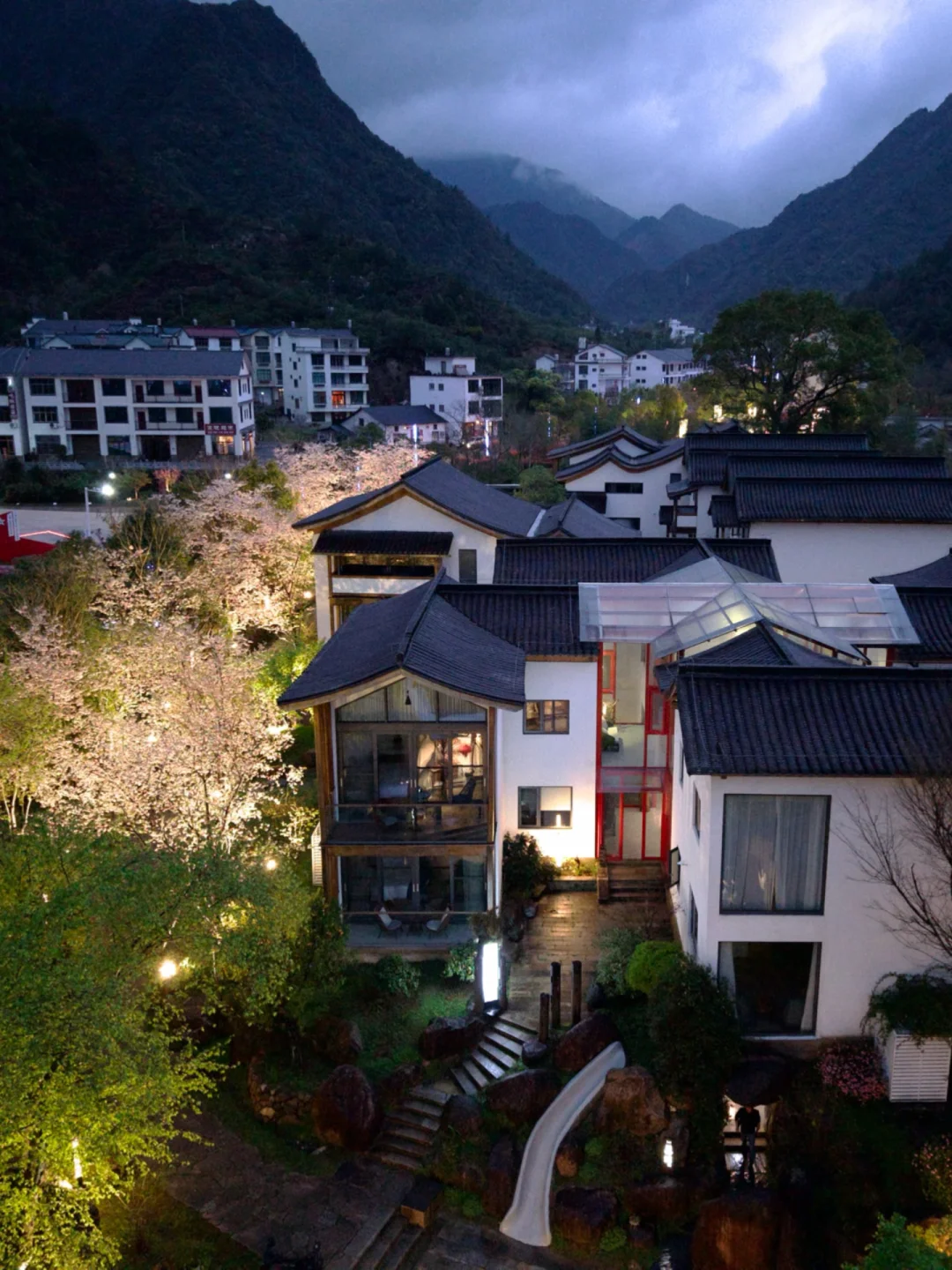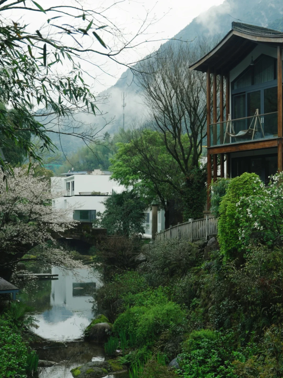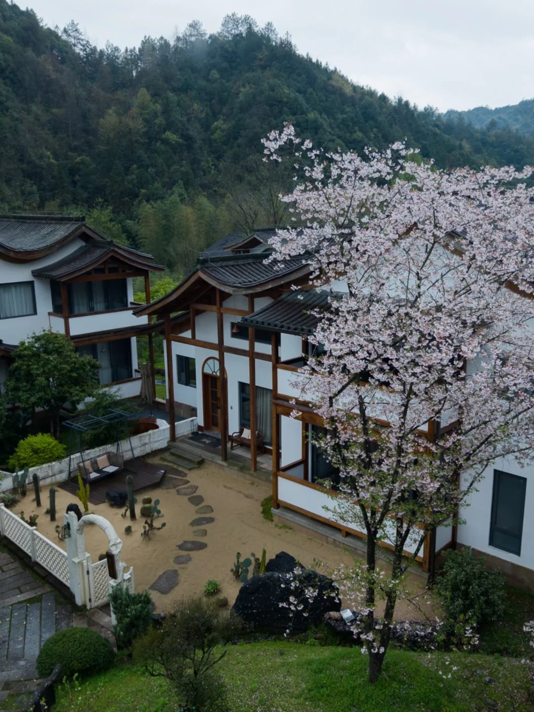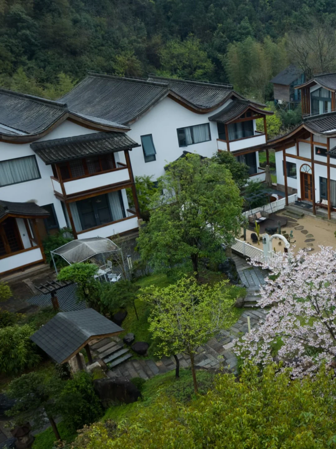 白墙黛瓦依着山形错落,草木、光影、风的声音,都刚刚好。