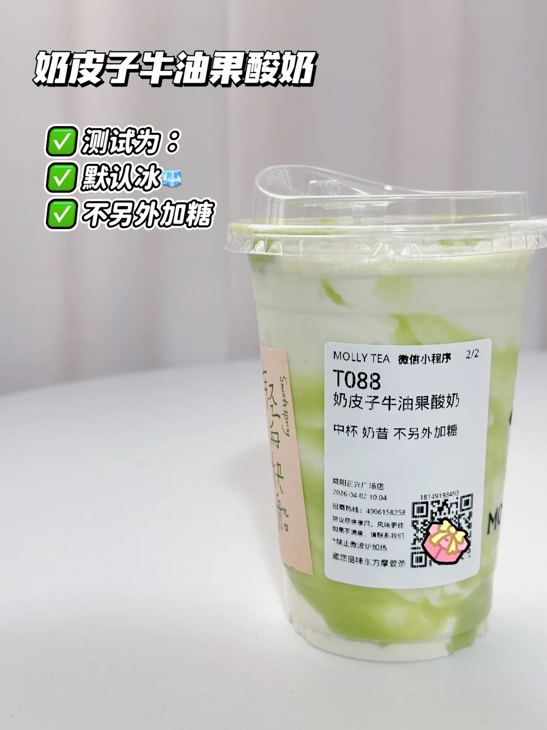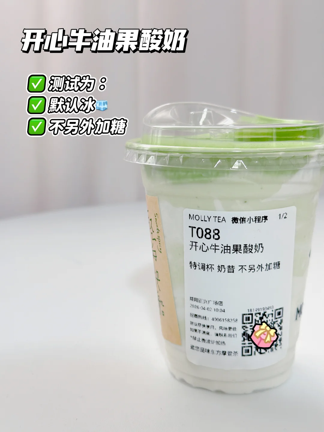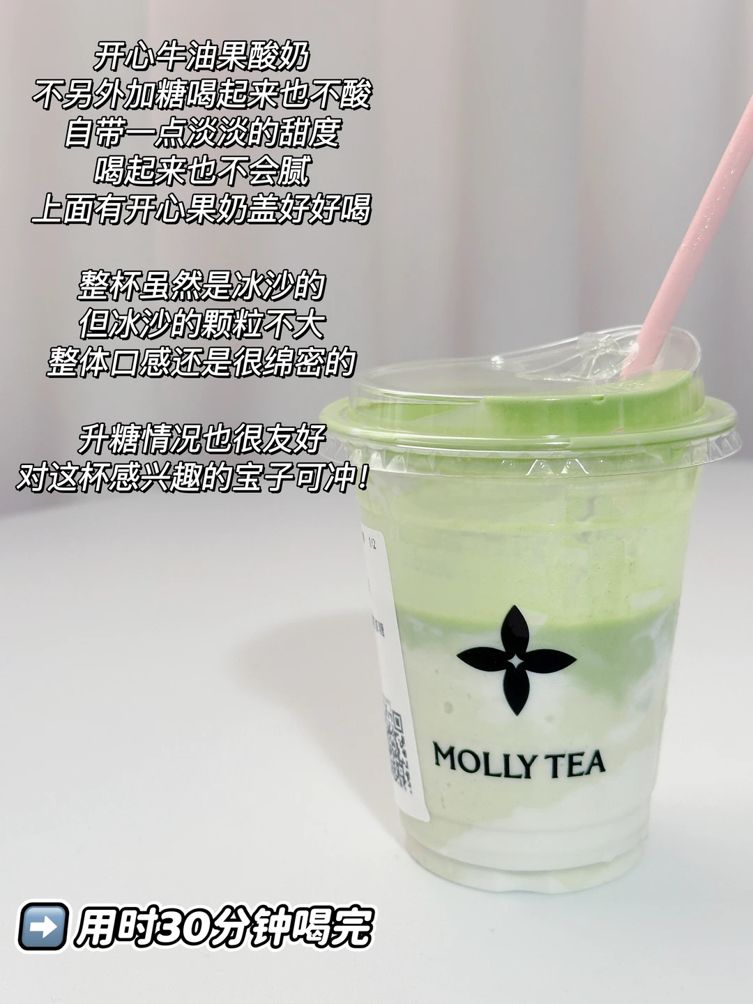 开心牛油果酸奶,不另外加糖喝起来也不酸,自带一点淡淡的甜度,喝起来也不会腻,上面有开心果奶盖好好喝[鼓掌R]整杯虽然是冰沙的,但冰沙的颗粒不大,整体口感还是很绵密的〰️升糖情况也很友好,对这杯感兴趣的宝子可冲!