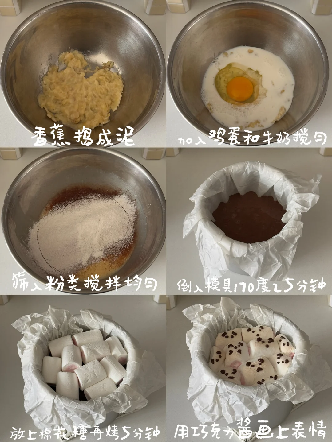 ▪️香蕉捣成泥加入鸡蛋和牛奶搅匀备用