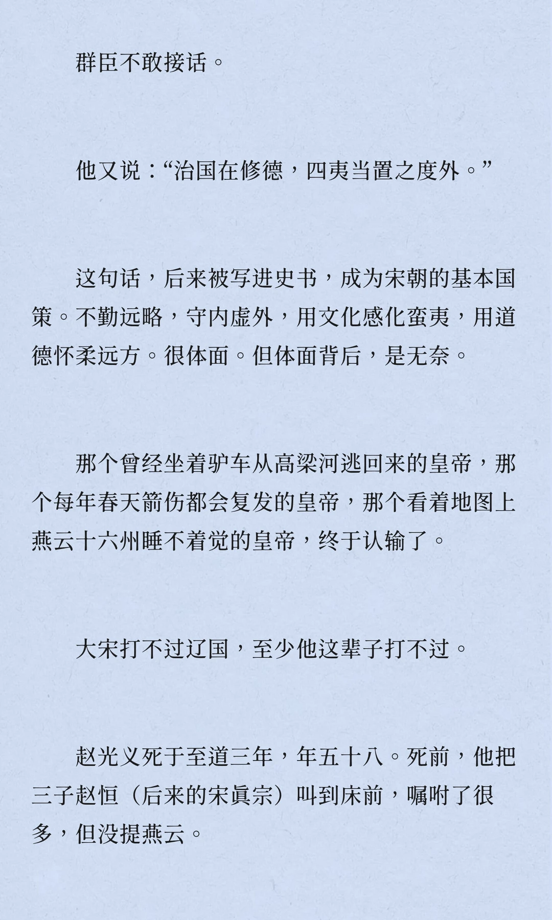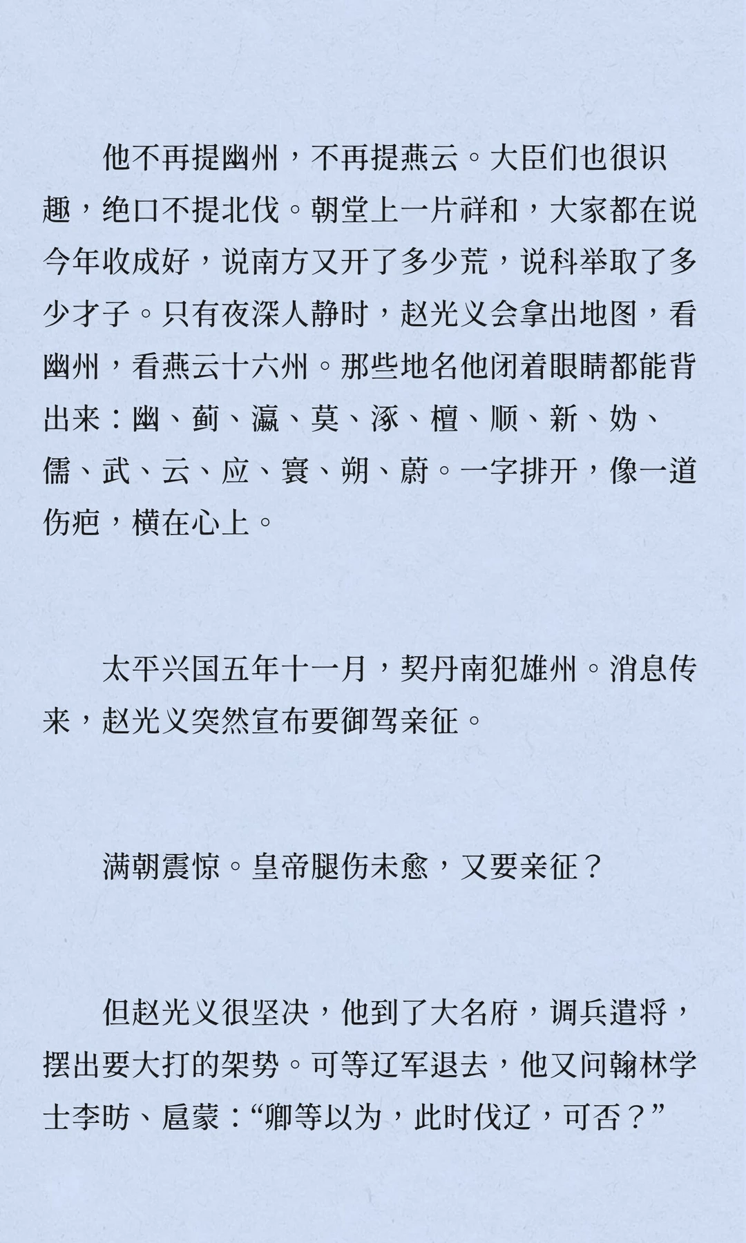宋太宗赵光义平定北汉后,决定收复幽云十六州,但接连失败,最终放弃。他虽多次亲征,却无法改变大宋长期守内虚外的国策。