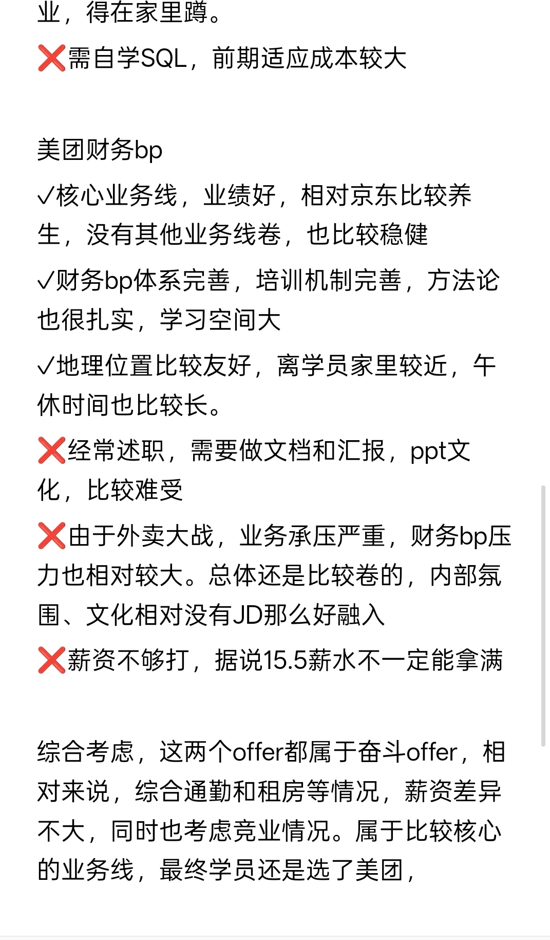 ❌由于外卖大战,业务承压严重,财务bp压力也相对较大。总体还是比较卷的,内部氛围、文化相对没有JD那么好融入