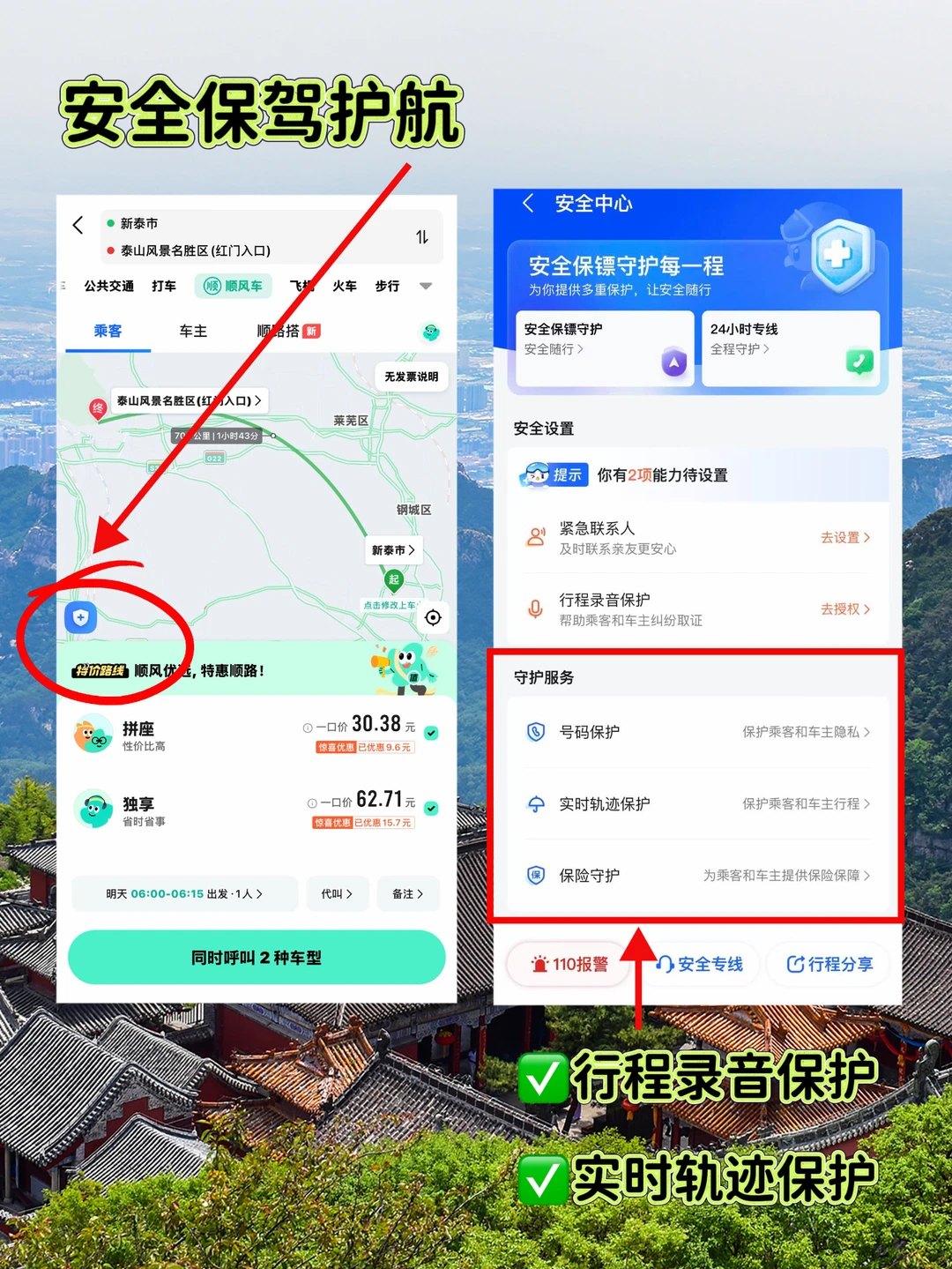 🔹安全拉满:行程录音+实时轨迹,全程守护
