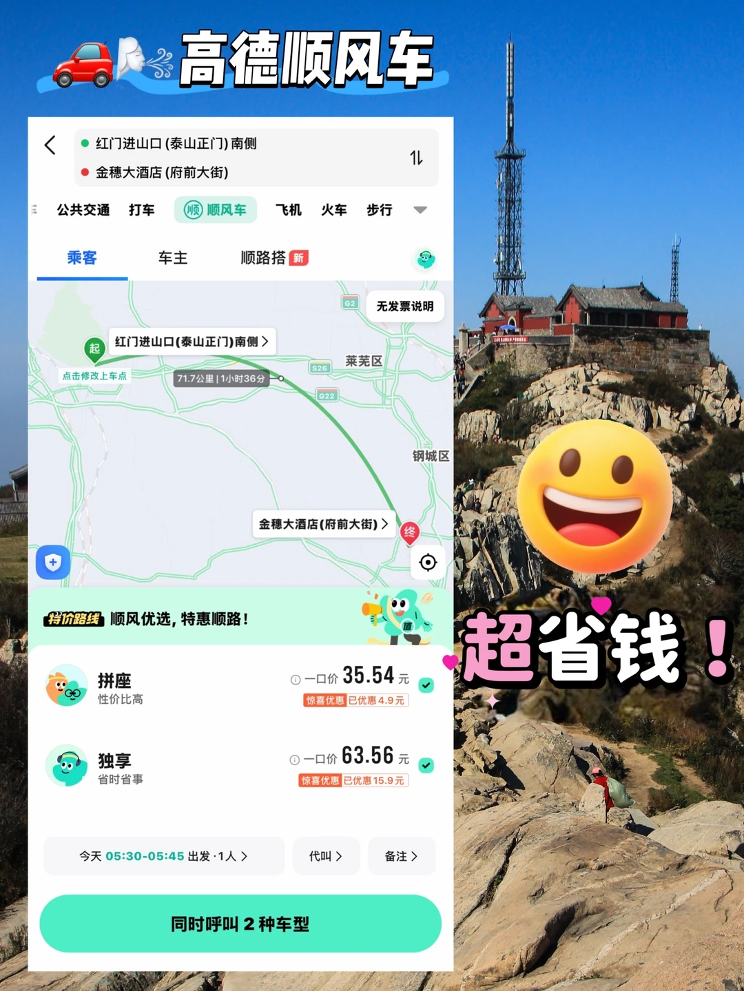 • 6:30 新泰出发,高德顺风车直达红门入口